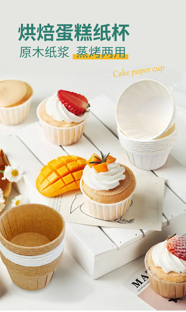 【买一送一!到手100个!】蛋糕杯蛋卷边 一次性马芬杯 淋膜杯耐高温烘焙纸杯 防油杯糕纸杯白色