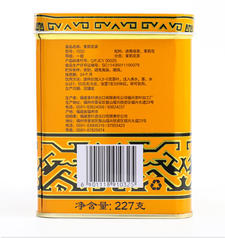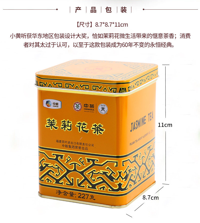 中粮-中茶一级茉莉花茶227g黄罐散装茶叶中华老字号中粮出品