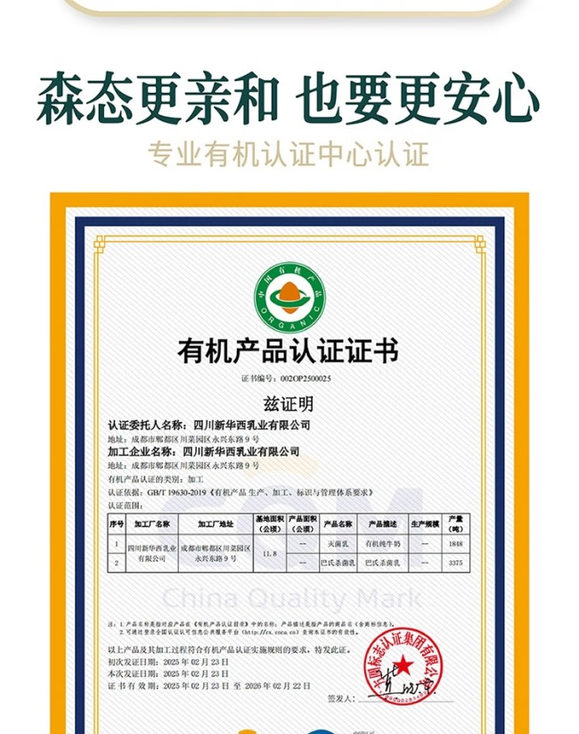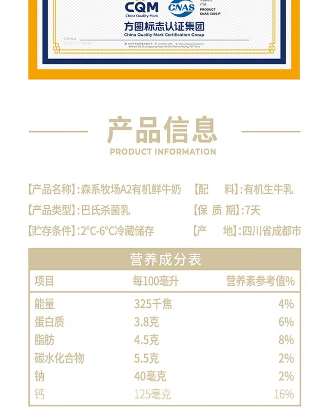 新希望A2有机鲜牛奶 900ml