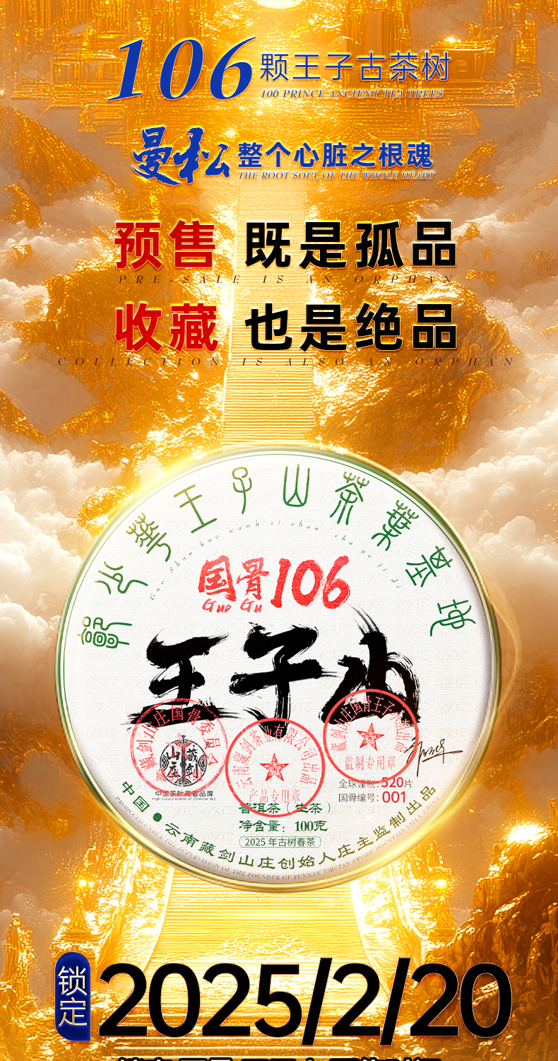 藏剑山庄巨奢 国骨106曼松王子山!100克/片!首发抢2片赠1片 抢3片赠2片!(赠天工玄铜盒)