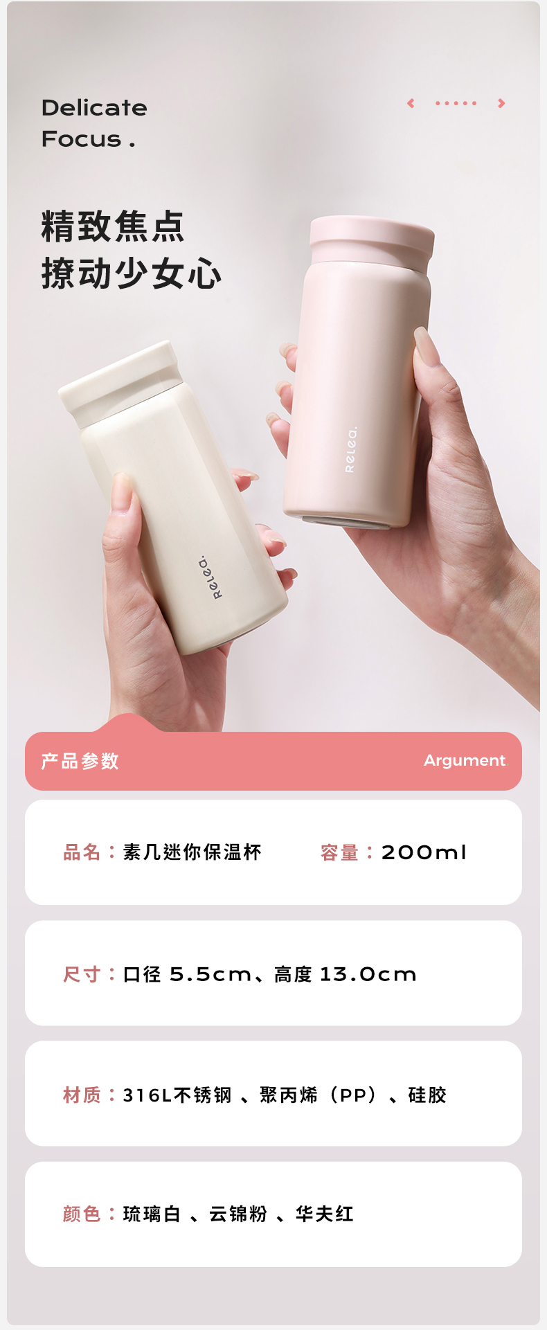 物生物口袋保温杯316不锈钢迷你女便携水杯超轻小巧学生儿童杯子200ml