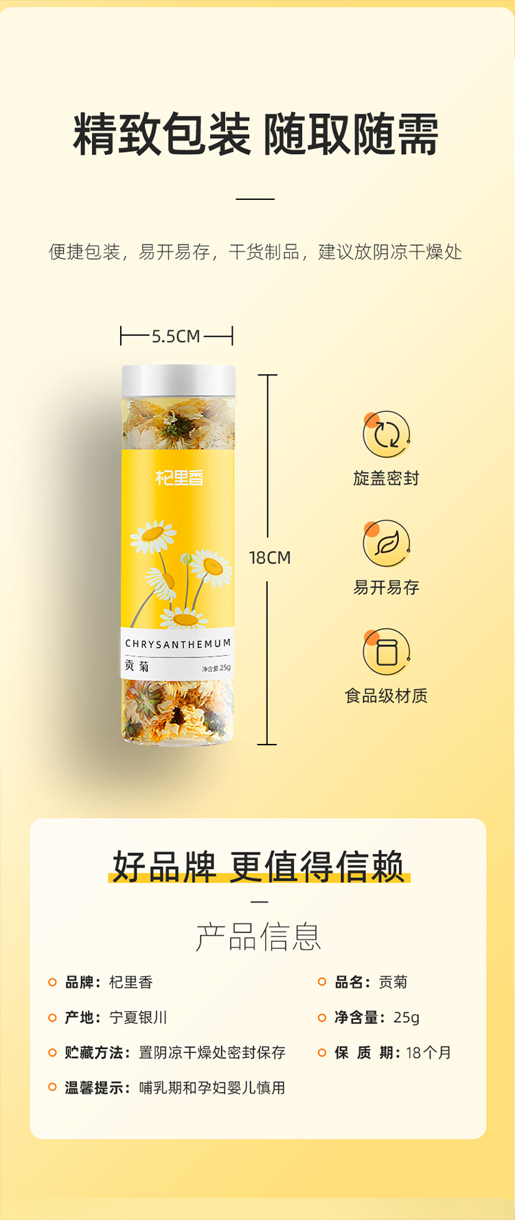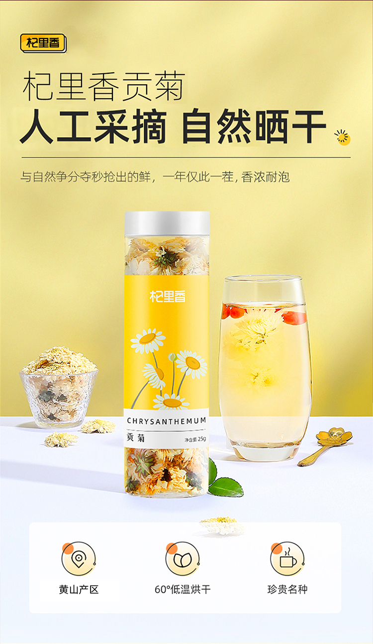 【杞里香贡菊花草茶25g】黄山产地 均匀不散朵 口味干爽 可搭配枸杞、玫瑰