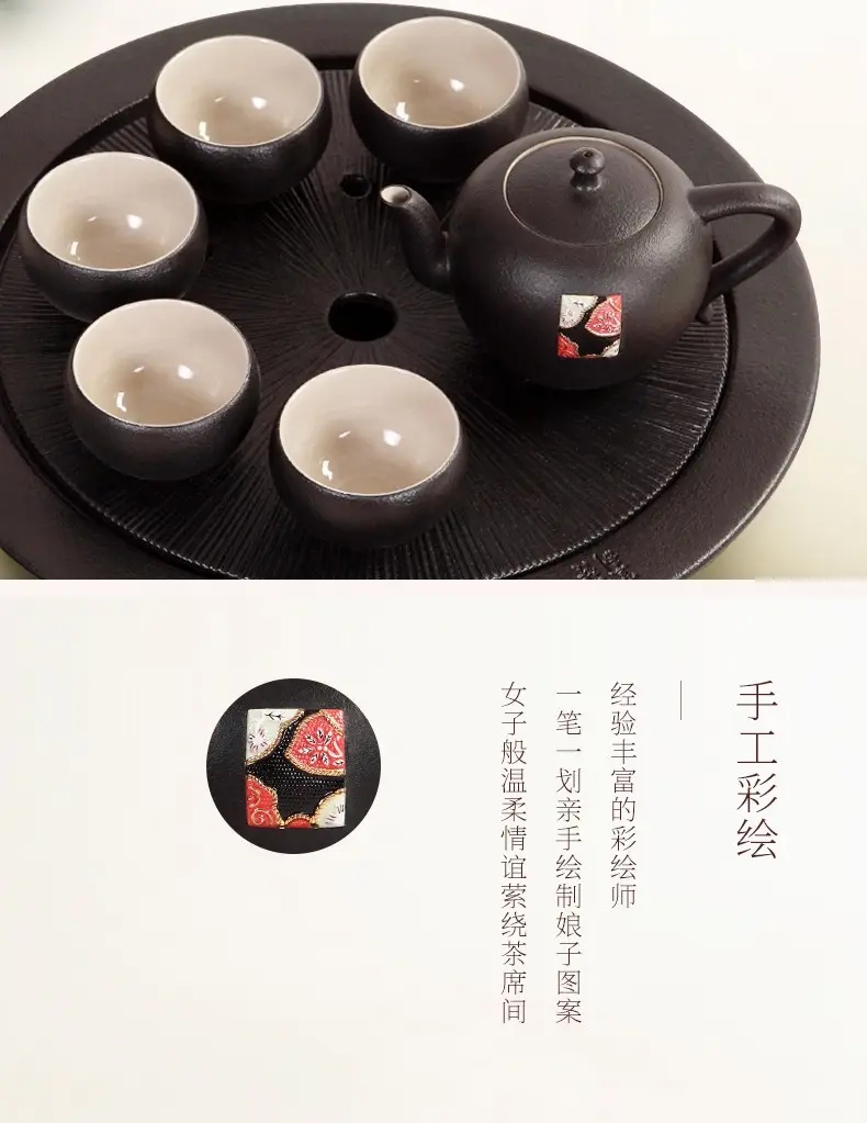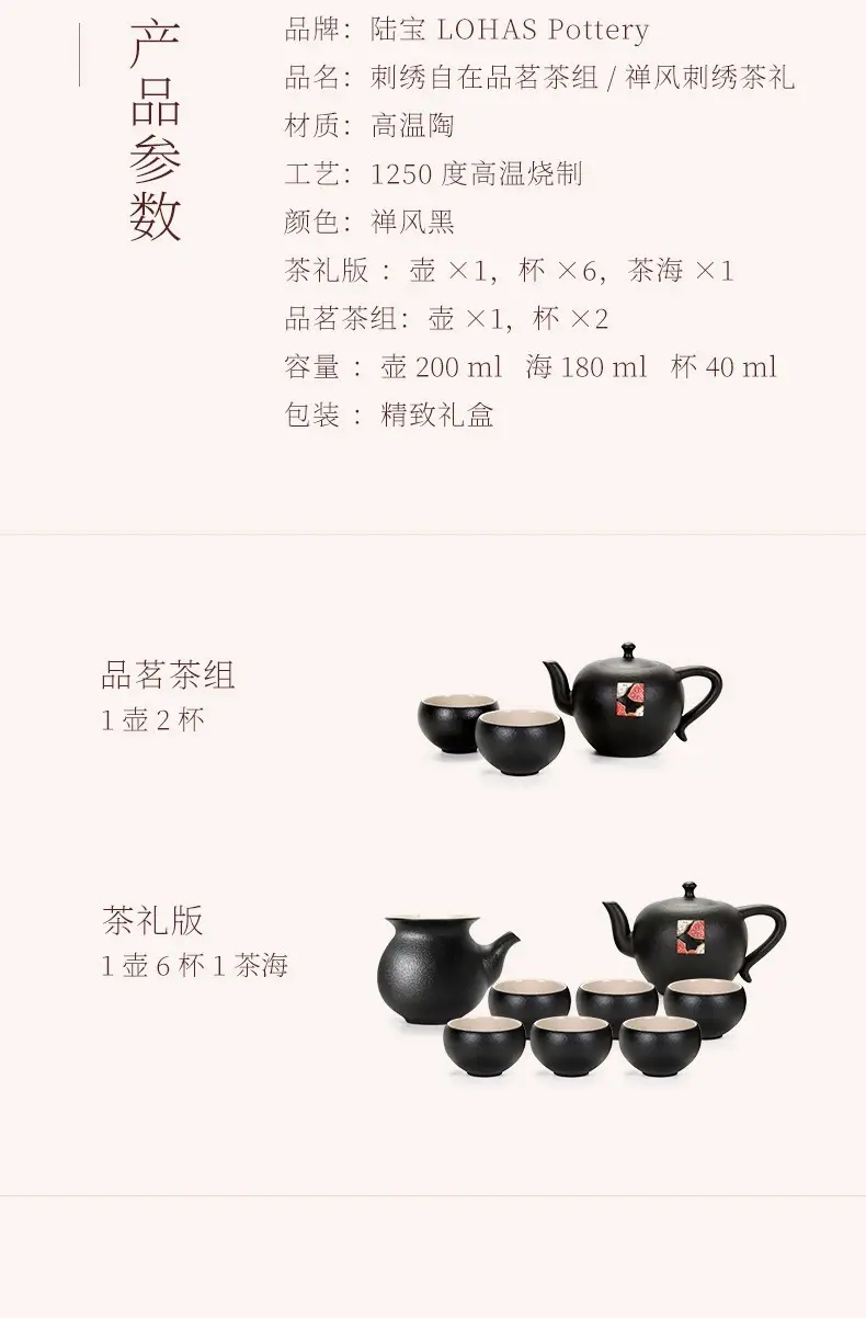 【清仓特惠5折,仅2套,无货退款】陆宝禅风刺绣茶礼茶组陶瓷泡茶具一壶六杯茶海杯子功夫茶组套装