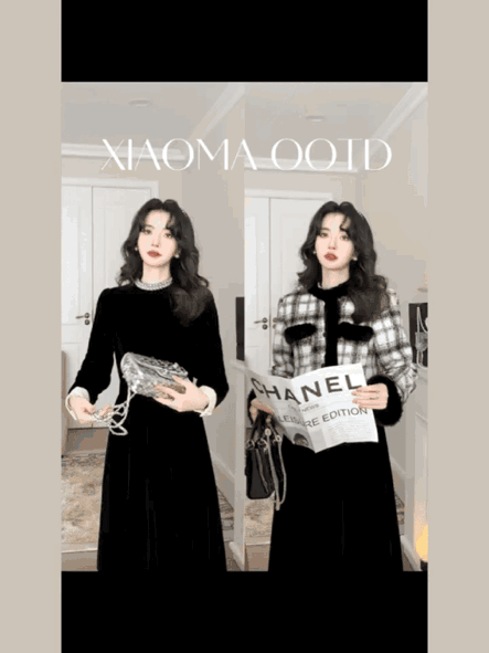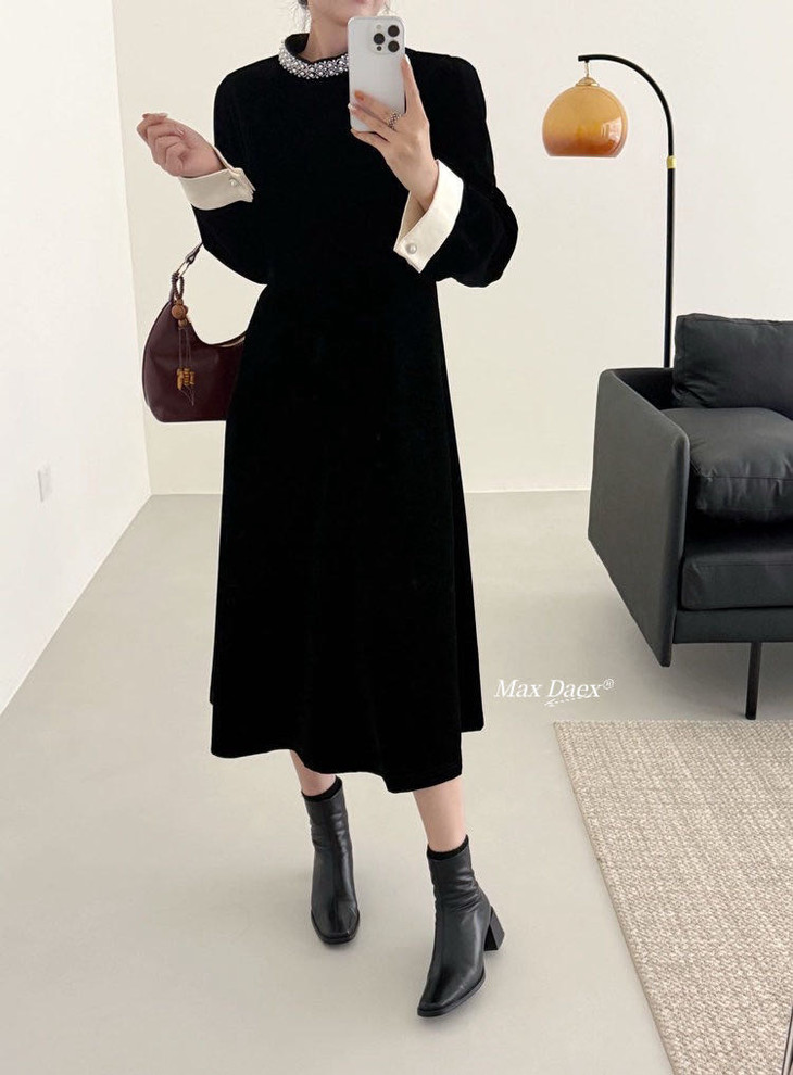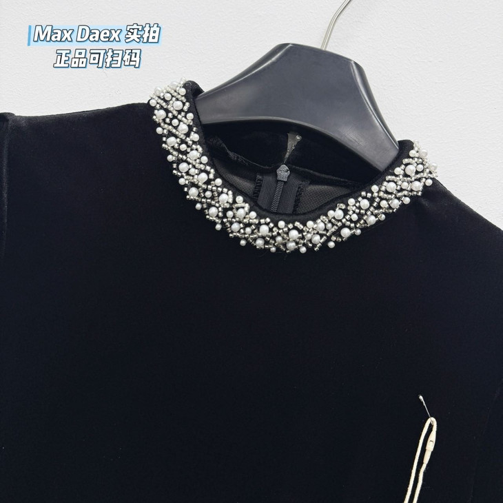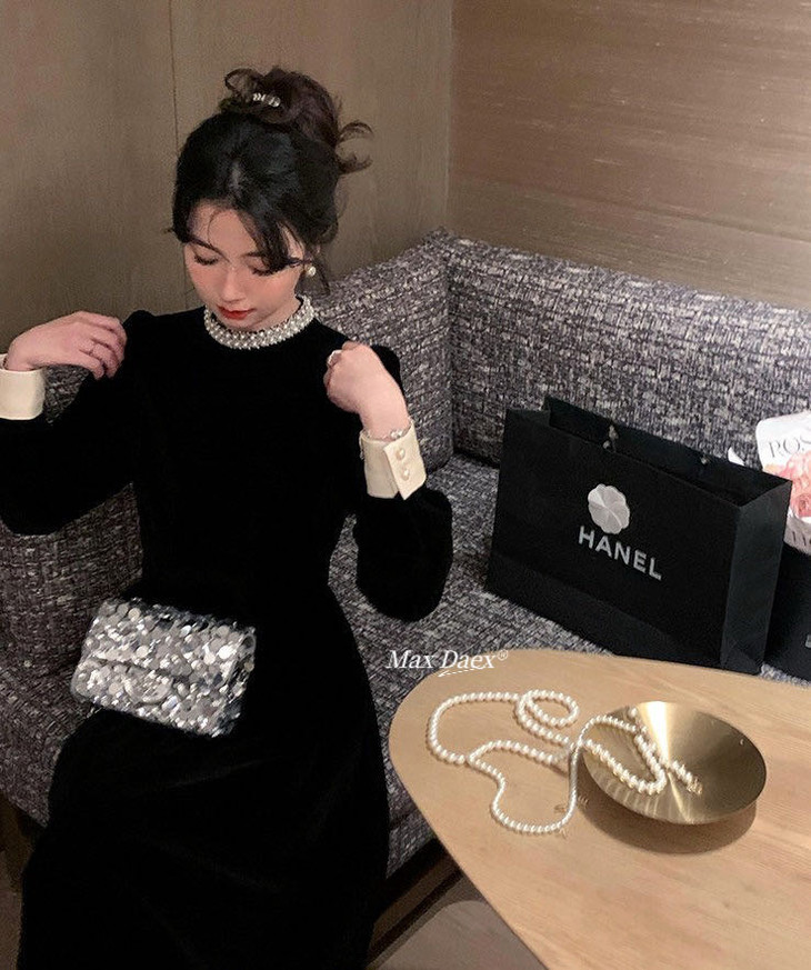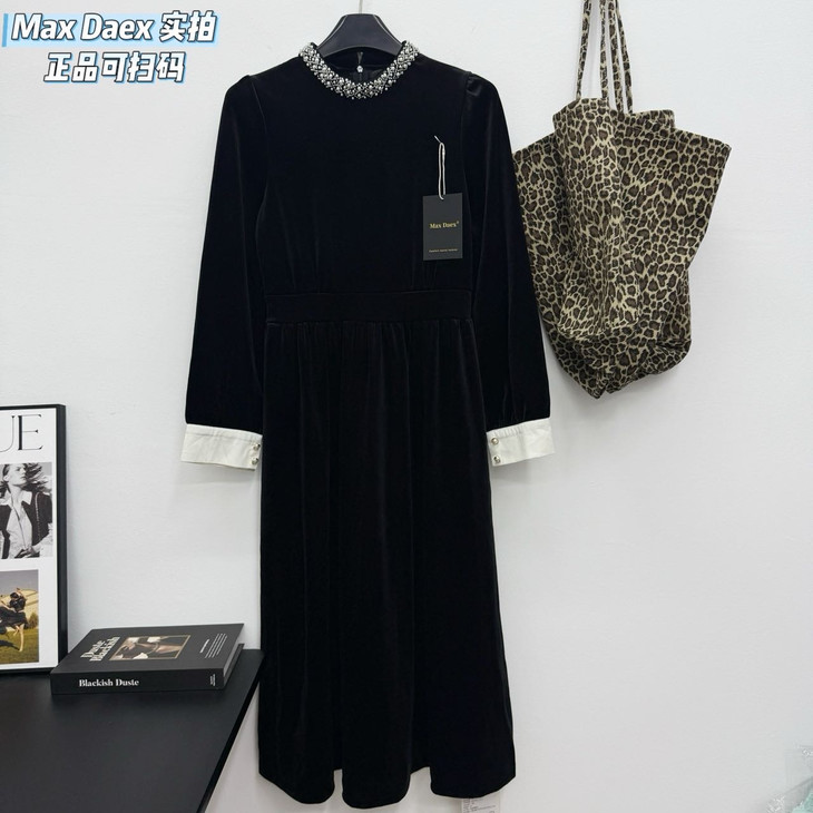 Max Daex®🇭🇰赫本风丝绒收腰连衣裙年会C位必出片 美到发晕新年战袍 经典贵气小黑裙重工镶钻款【法式优雅赫本风丝绒收腰连衣裙】