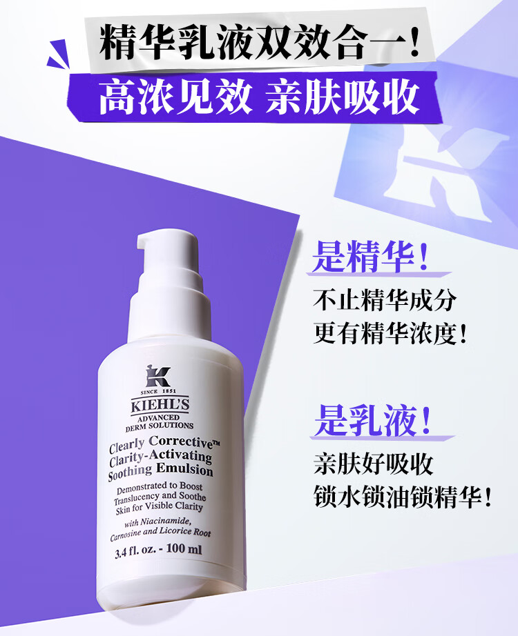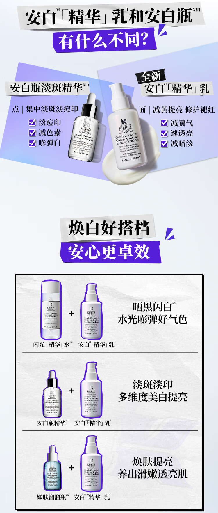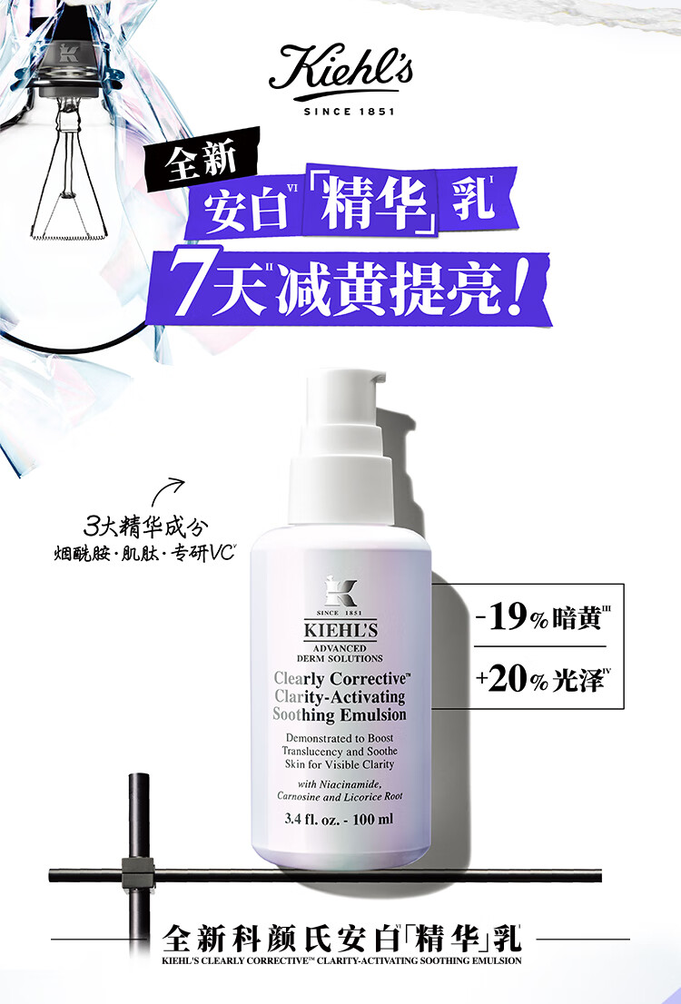 科颜氏 安白淡斑精华乳100ml 烟酰胺减黄修护保湿