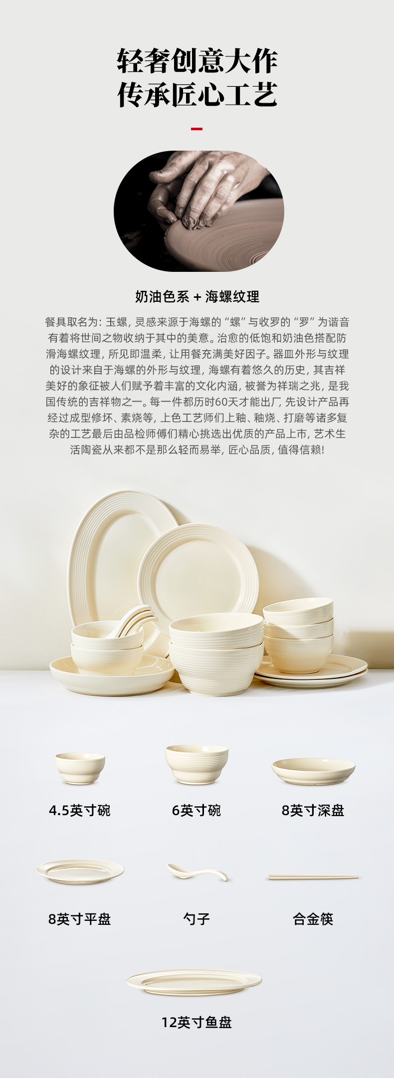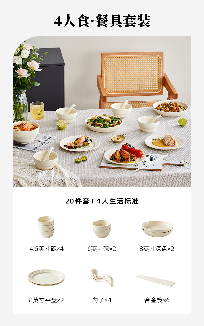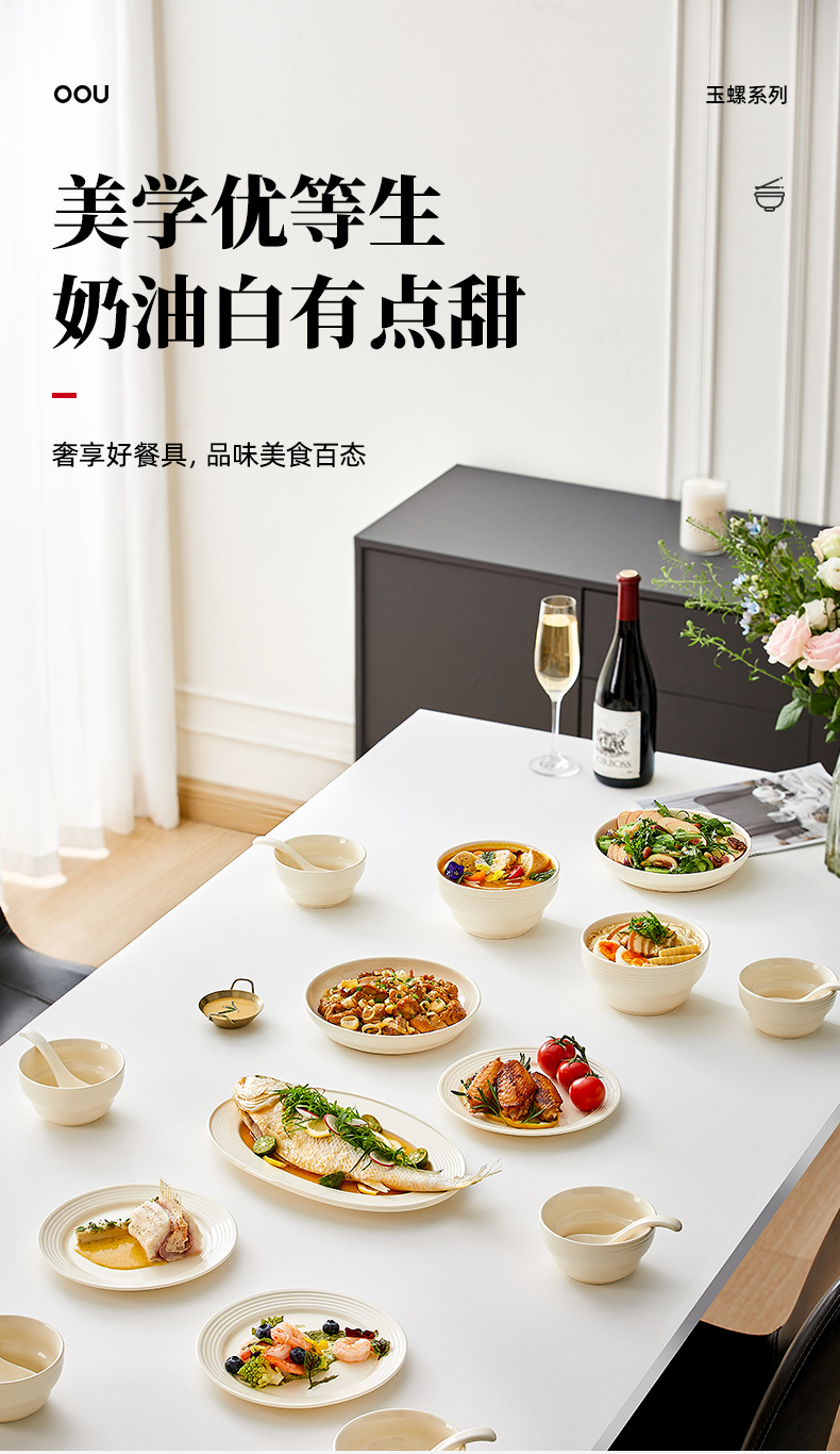 【OOU•奶油风餐具套装】OOU碗碟套装家用2024新款餐具奶油白水果轻奢牛排餐盘面碗筷组合