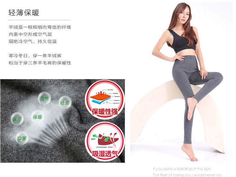 羊绒系列-【女款羊绒保暖裤】100%阿尔巴斯白山羊绒5款颜色可选 常规款和加厚款无缝无痕打底裤