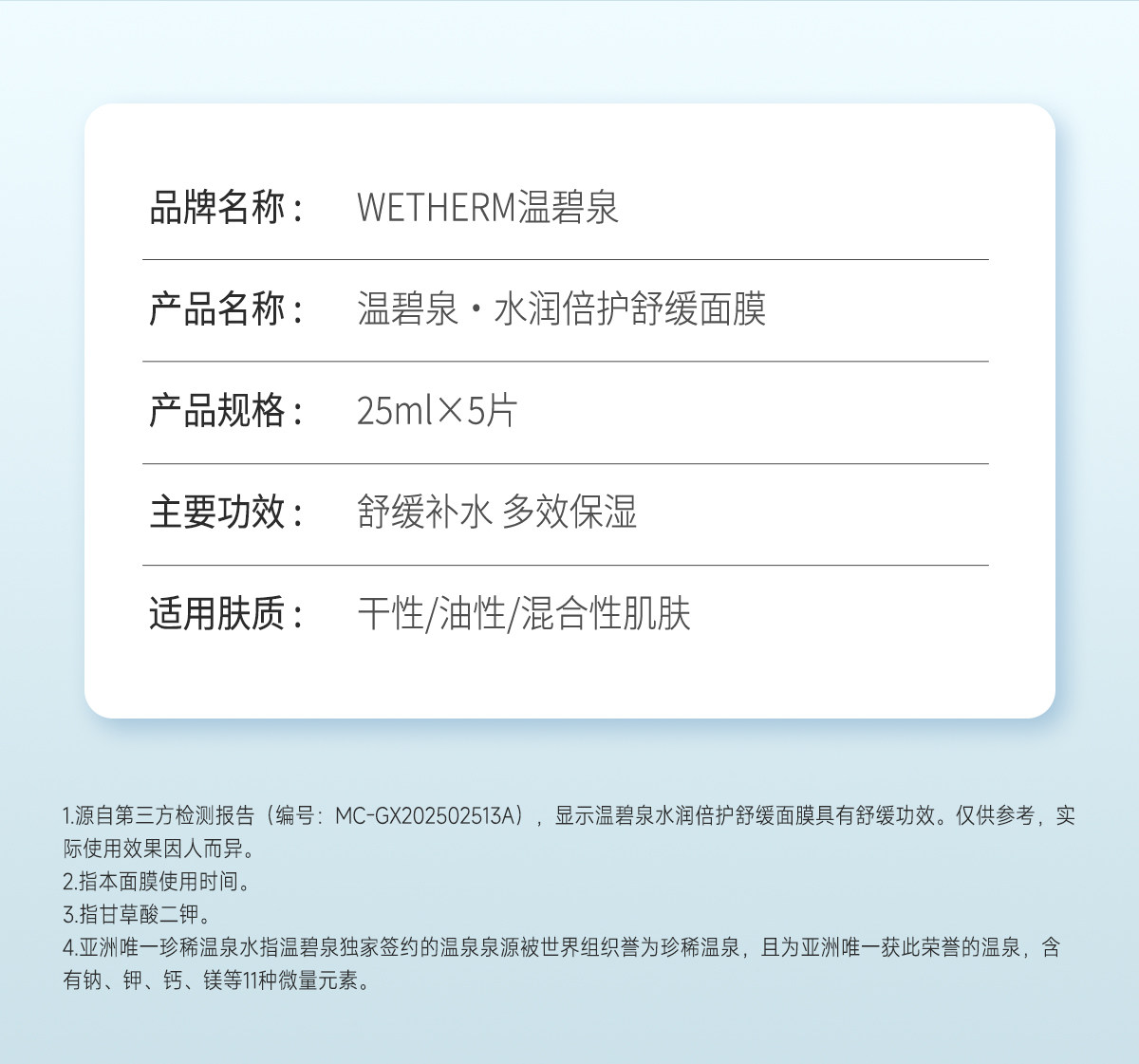 WETHERM温碧泉-W1371水润倍护舒缓面膜 25mlx5片