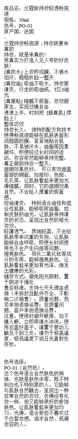 【香港免税店🇭🇰·买一送六】「热销」Lancôme兰蔻持妆粉底液一拖六套盒#Po-01(30ml+5ml*6)·香港直邮