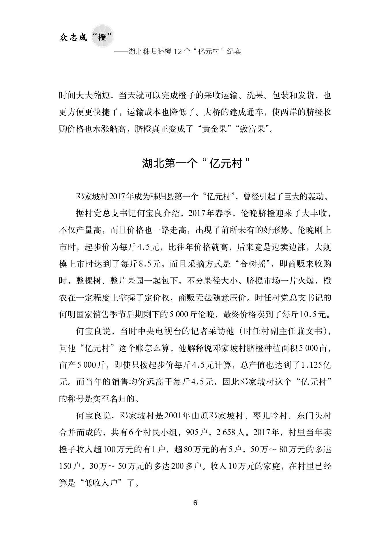 湖北秭归,是世界级大诗人屈原的故里。2017年以来,秭归县先后涌现出12个脐橙亿元村,老百姓因此富起来了,脐橙成了他们的黄金果、致富树。作者前往秭归县深入生活,采访了大量秭归县干部群众,了解他们在三峡两岸艰苦创业,战天斗地,坚定不移发展脐橙产业的艰难历程,讲述发生在12个亿元村里的许多鲜为人知的精彩故事,歌颂了新时代背景下秭归人民勤劳致富的精神品质,为读者艺术呈现了中国乡村振兴背景下,新时代山乡巨变的一个美丽样本。