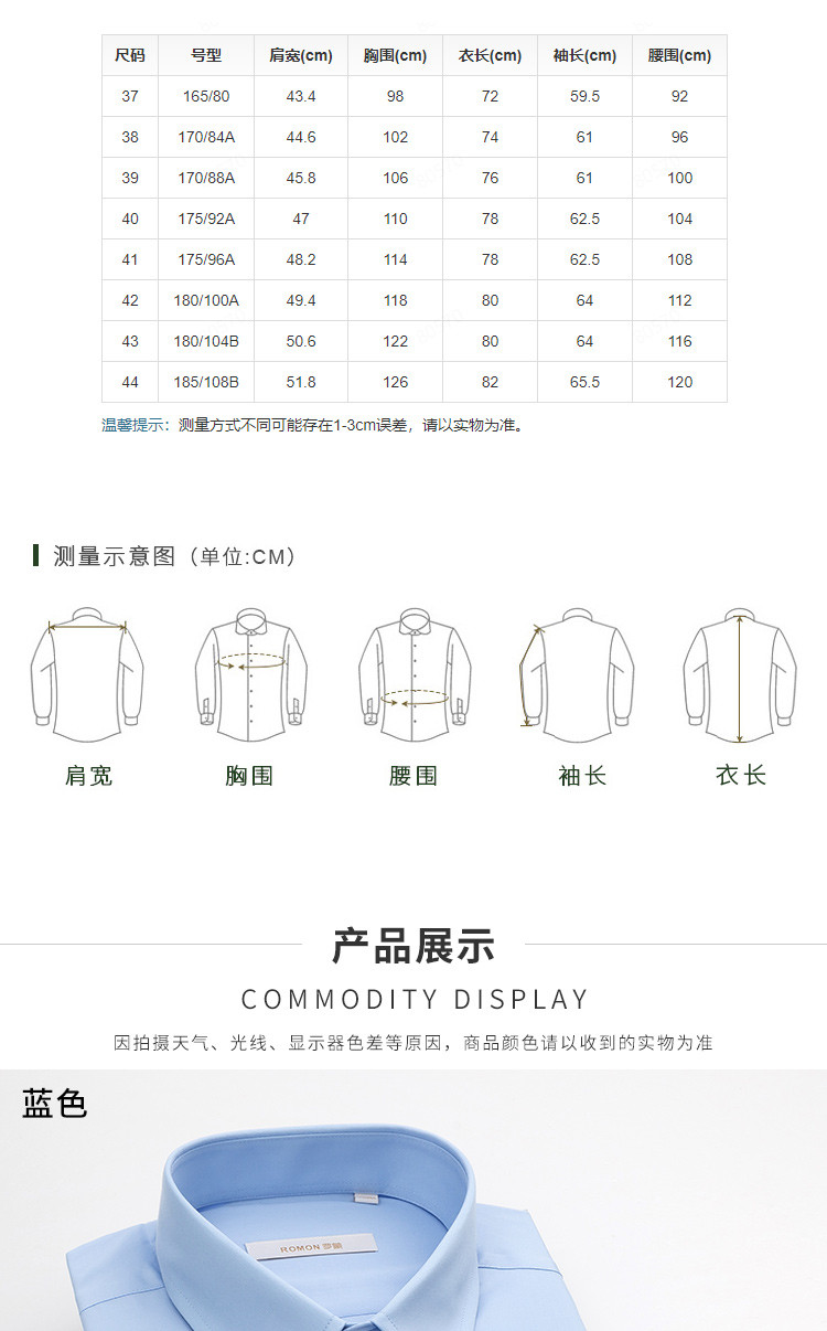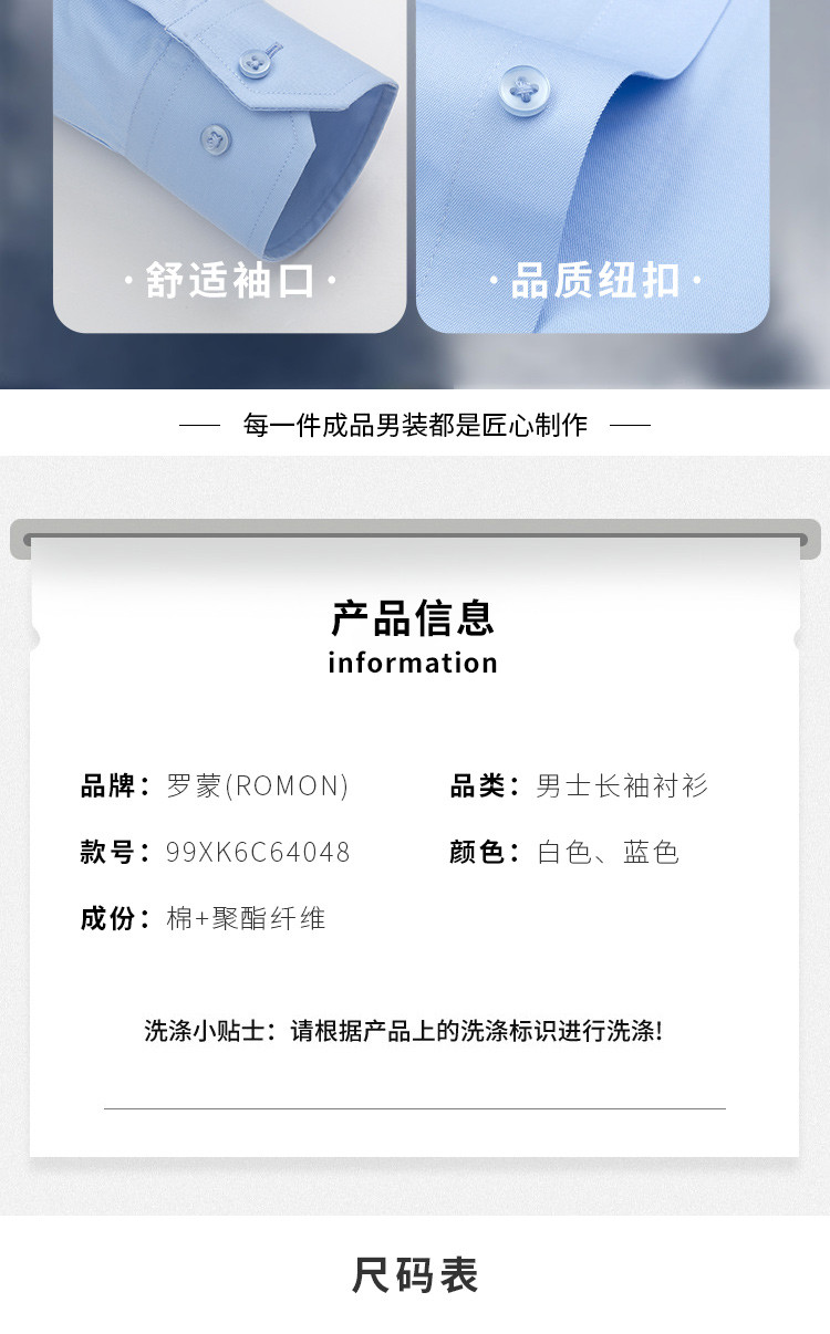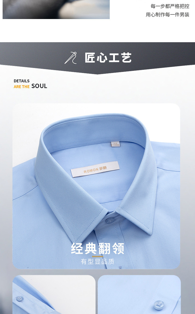 【60棉 定制款】罗蒙春秋男装长袖衬衫男士正装商务职业工装上班通勤男衬衣