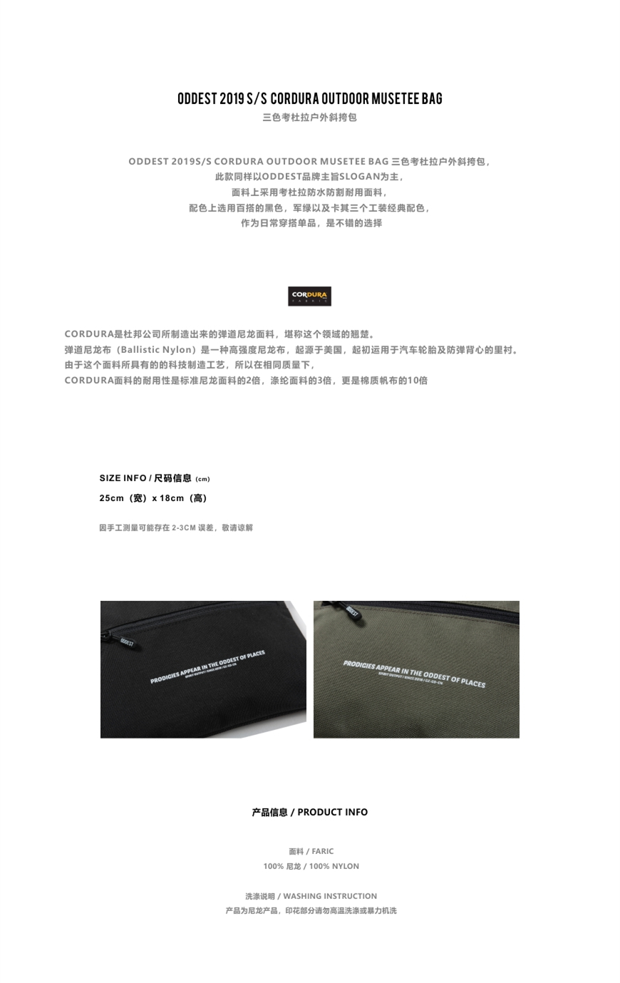 OURDAILYDOSE CORDURA 原创潮牌考杜拉尼龙斜挎包信封包单肩包