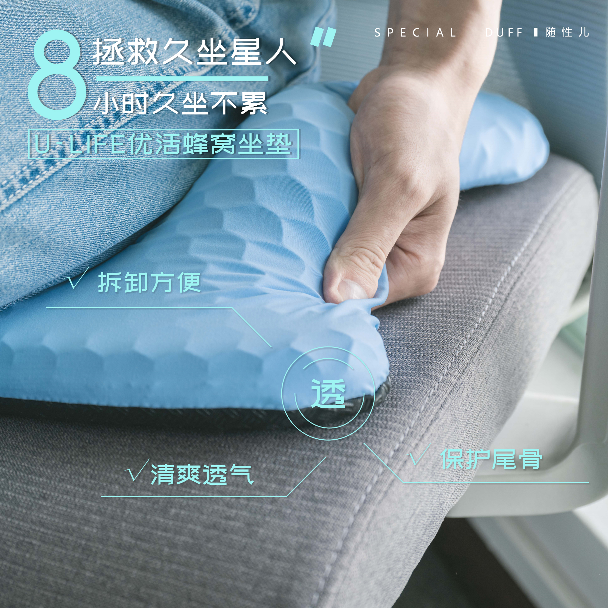 【品名】ULIFE优活蜂窝坐垫/屁垫