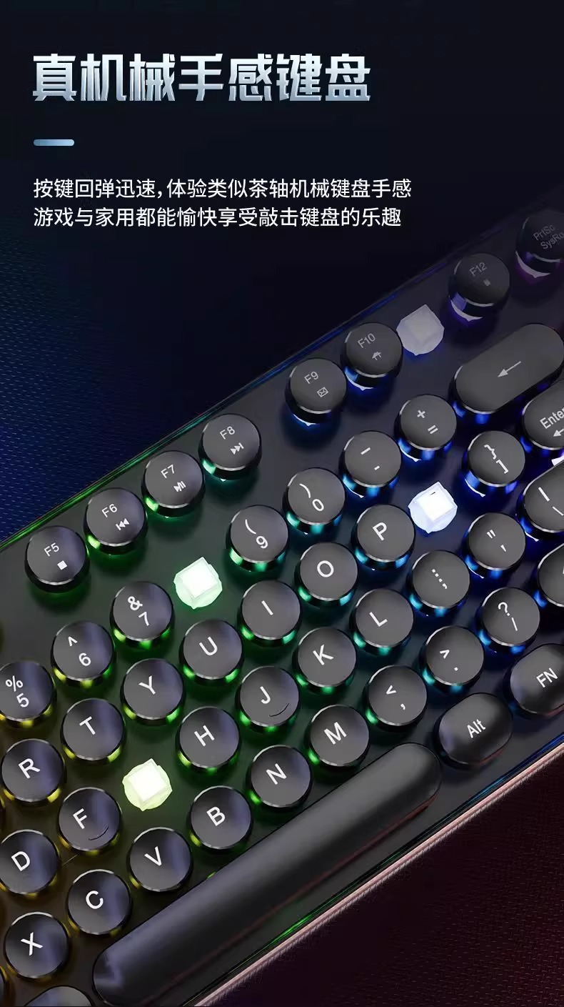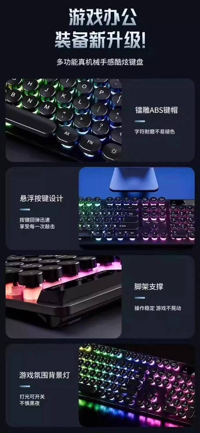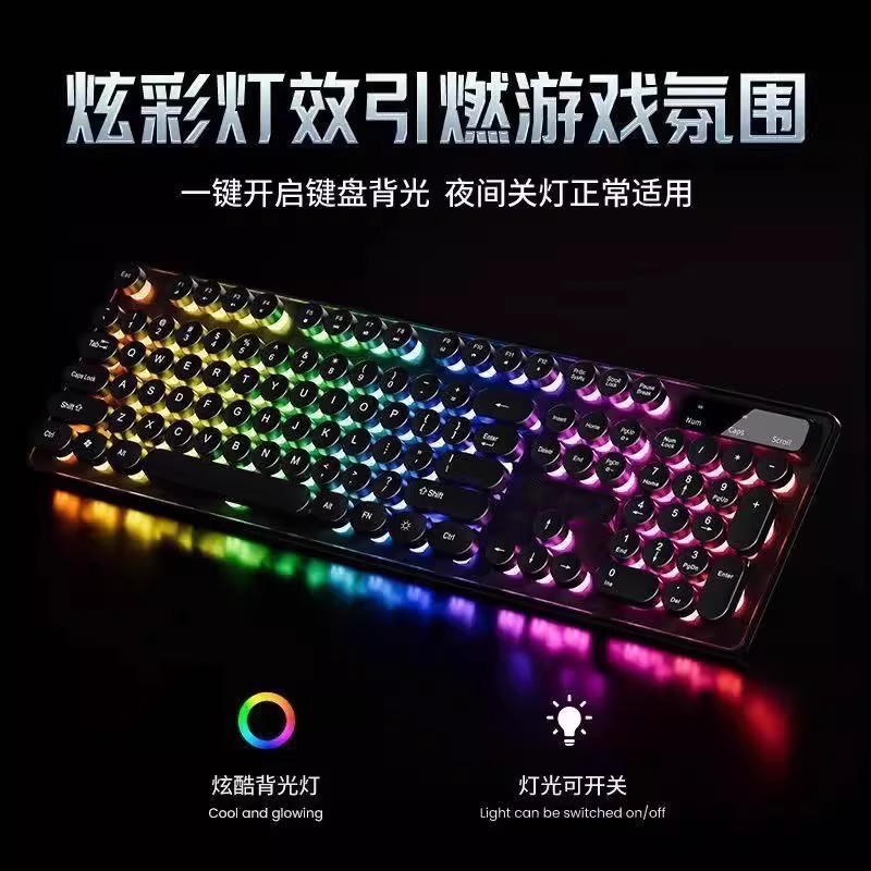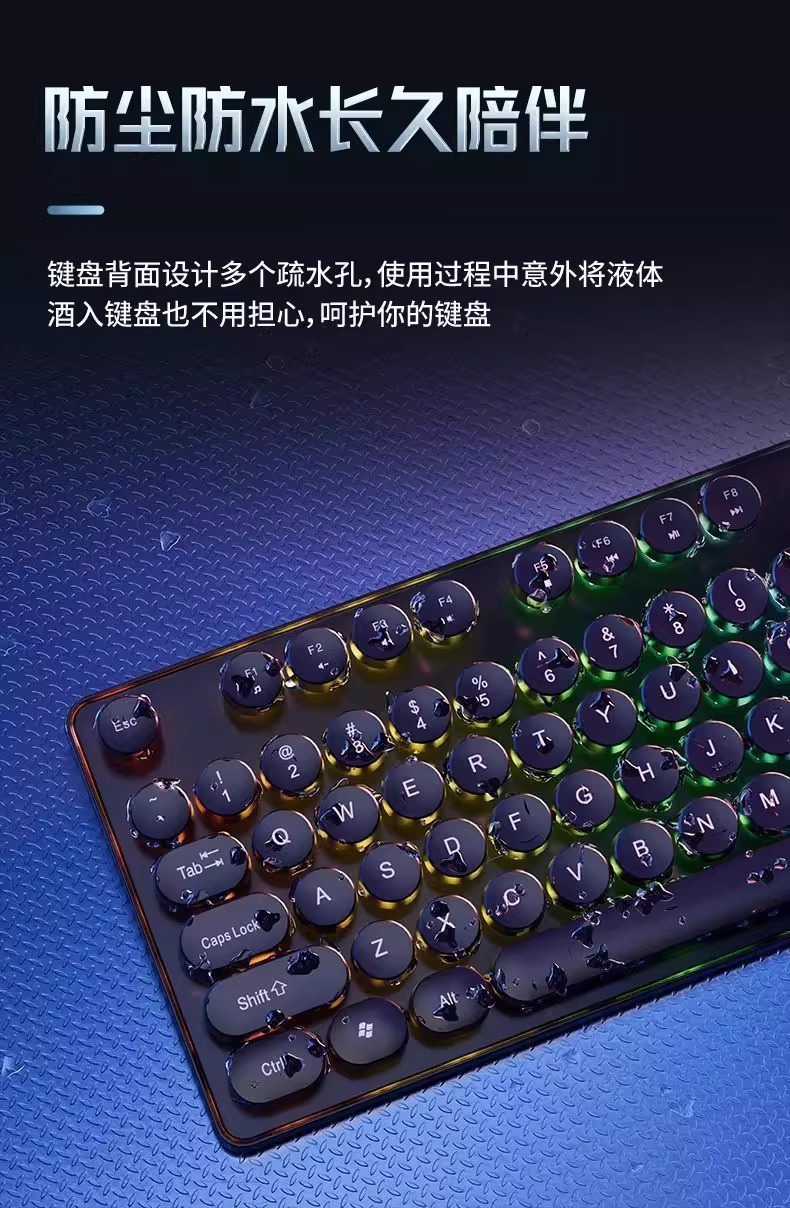 【复古机械键盘鼠标套装🔥】复古朋克键盘 ,台式电脑通用 ,机械键盘鼠标套装 办公专用静音无声有线,背光加持,夜战氛围感拉满⚡