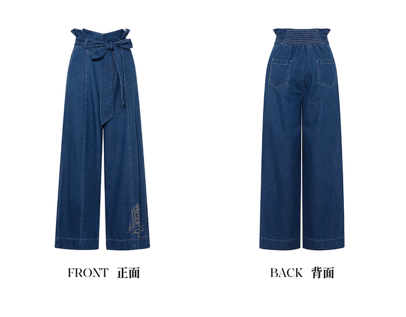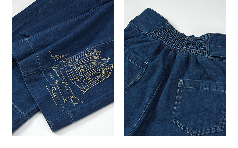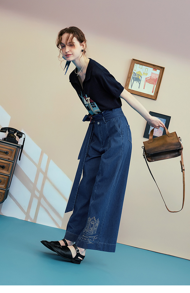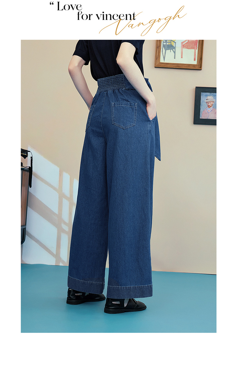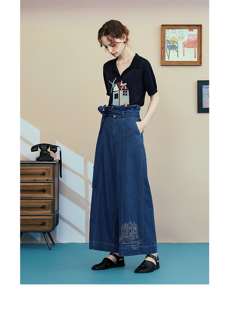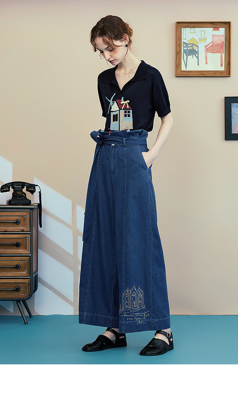两三事梵高文艺万丈蜃楼2025夏新款复古刺绣绑带阔腿牛仔裤女宽松