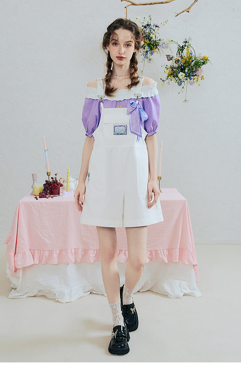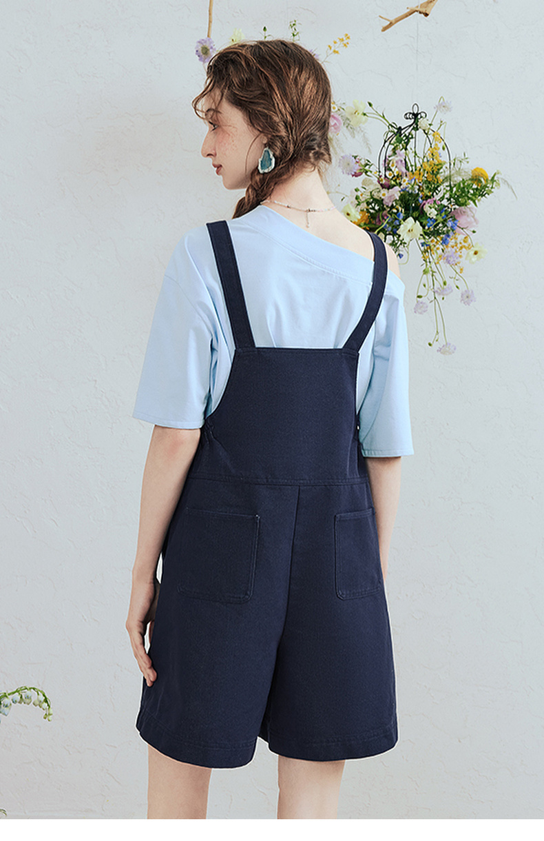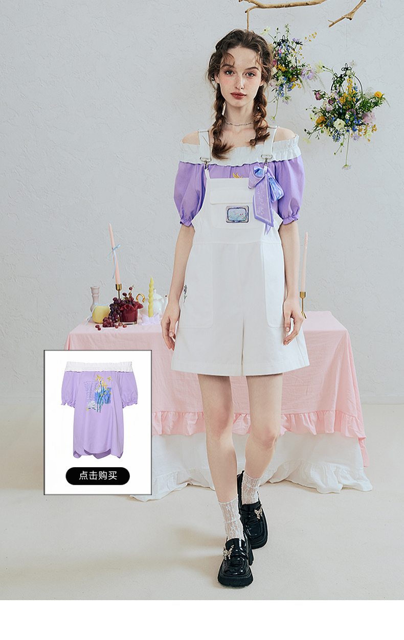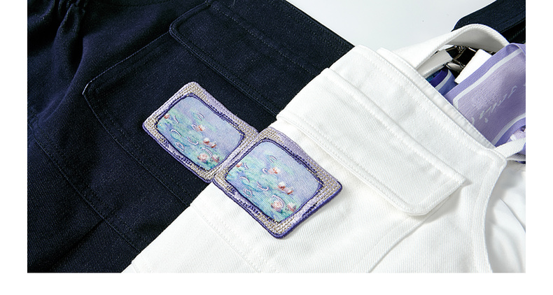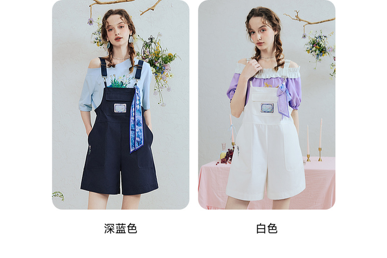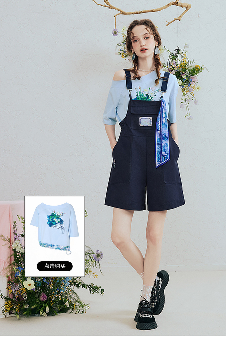 两三事 游牧童谣 2025夏季新款复古贴布绣丝巾装饰牛仔背带裤女