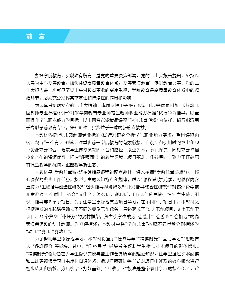 本教材以提高幼儿教师简笔画技能为宗旨,共分十个单元,包括器物、植物、人物、动物、景物、拟人及插图创编等方面内容,注重“理实一体”,将理论与实践相结合,图文并茂,深入浅出。第一单元认识简笔画,包括练习线条、认识基本形、写生与创作方法和工具材料的介绍。第二单元至第九单元,分类阐述简笔画的概念、写生技法、画法与步骤、练习与思考等,内容包含器物类、植物类、交通类、动物类、人物类、景物类、拟人类、组合类、彩色类九大类别及上万种图例。第十单元介绍简笔画的编创技巧及实际运用,包括儿童歌曲、儿童故事、古代诗词简笔画的编创步骤与方法。