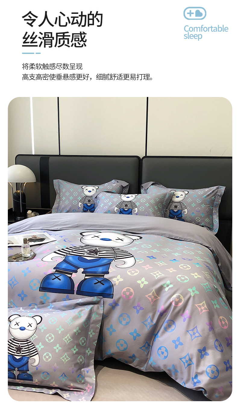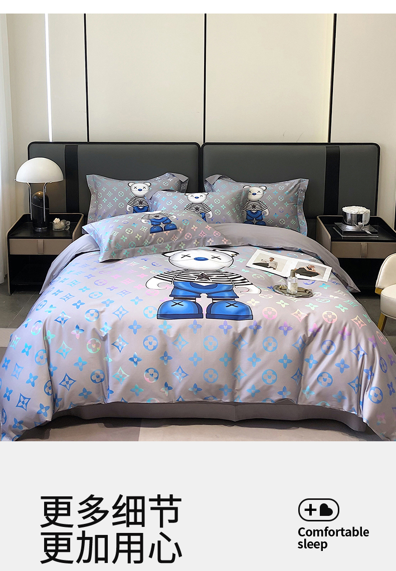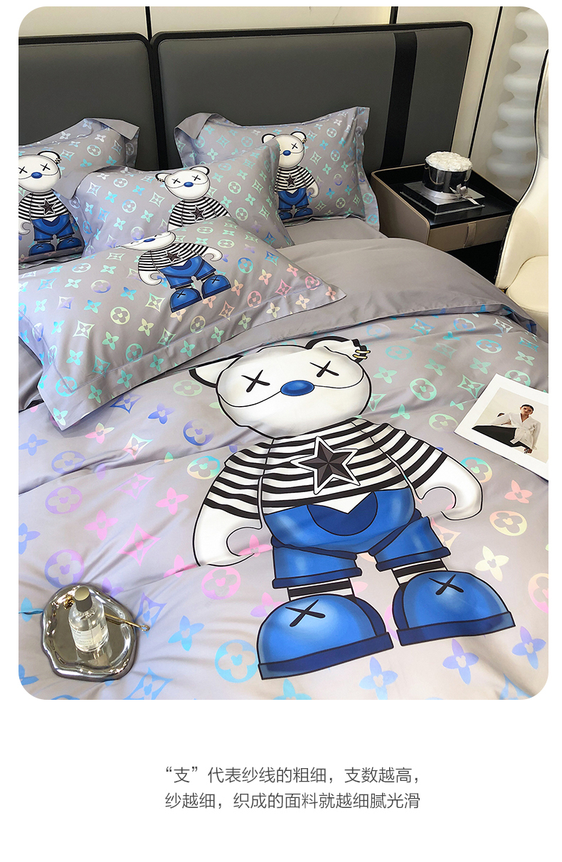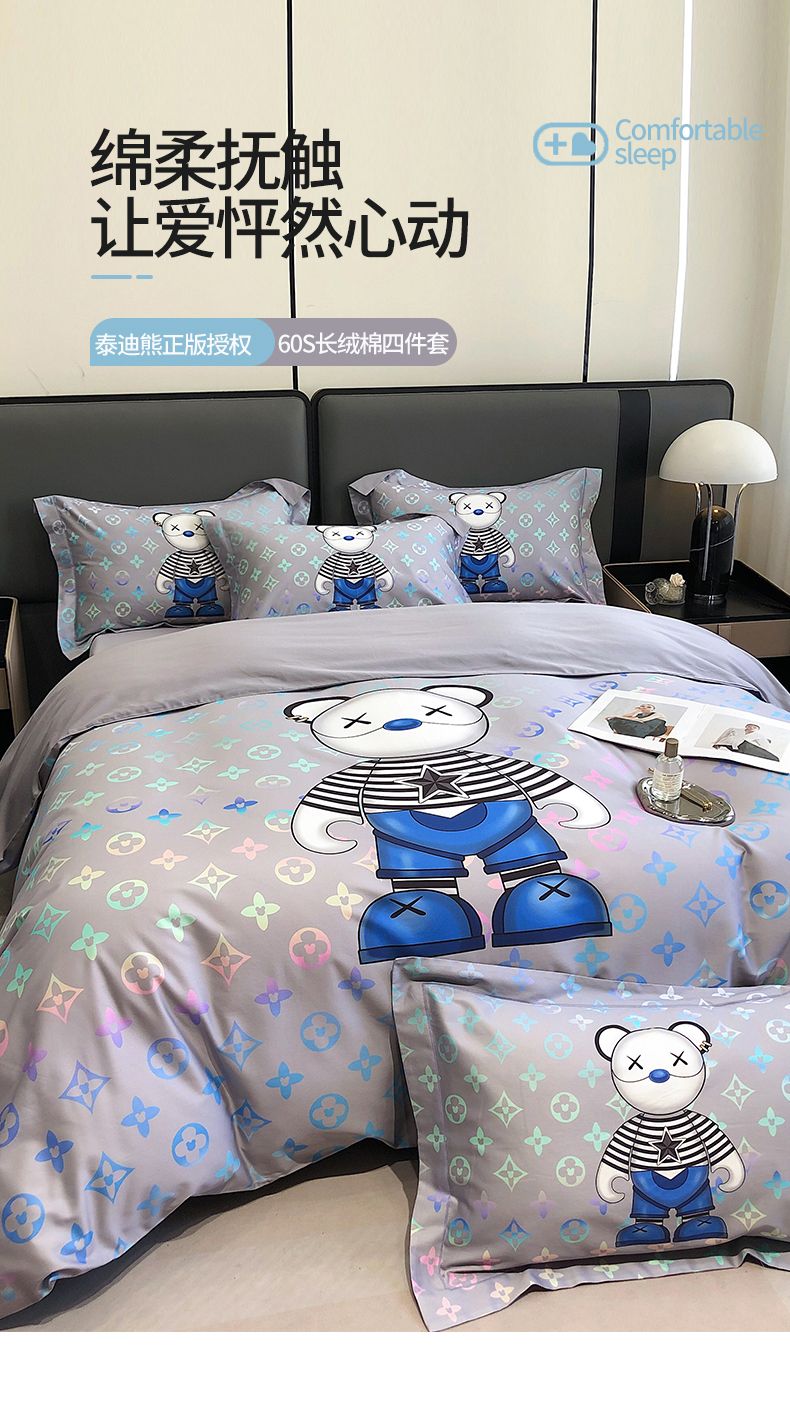 自然醒60支长绒棉泰迪熊四件套金太阳面料正版授权全棉轻奢潮尚大牌风床上用品KY