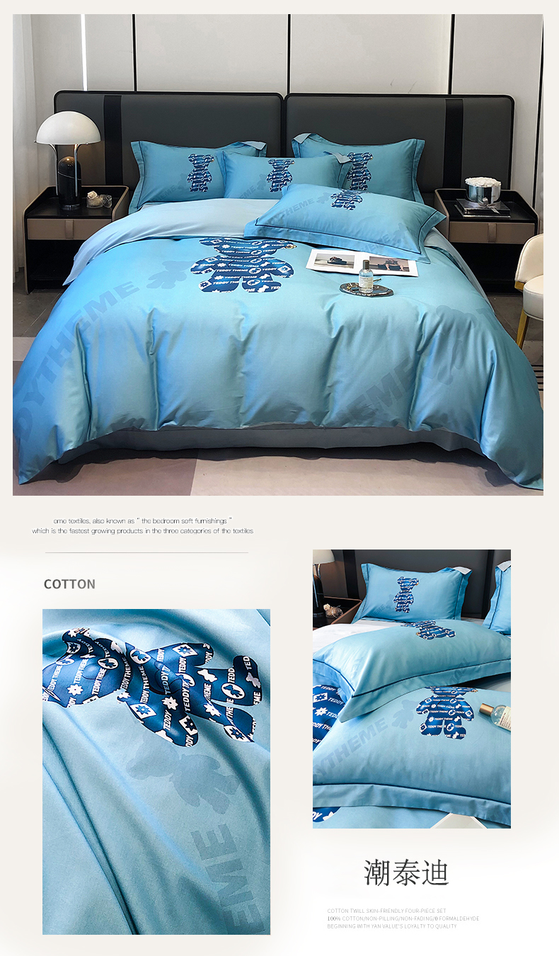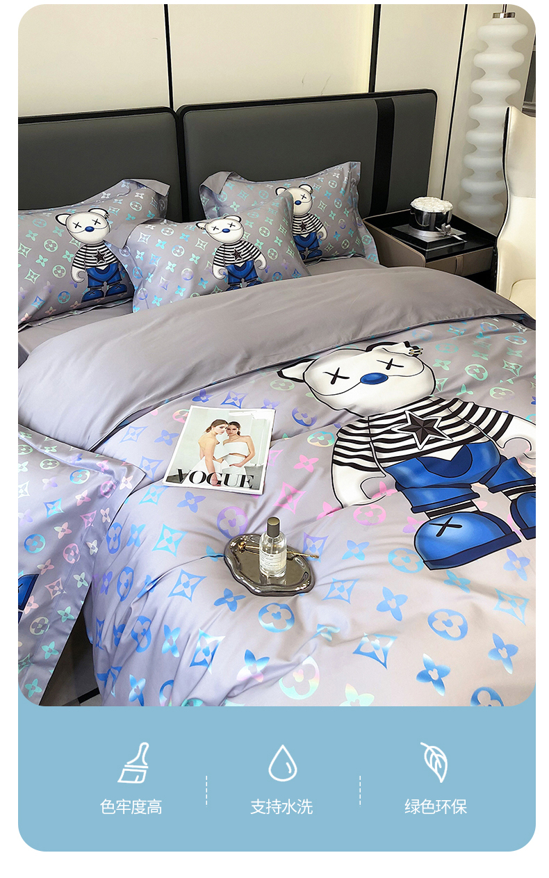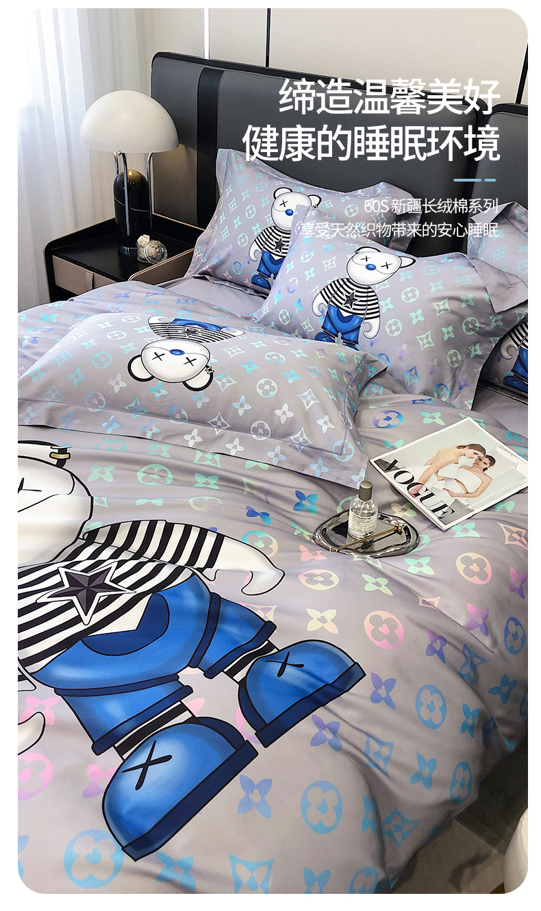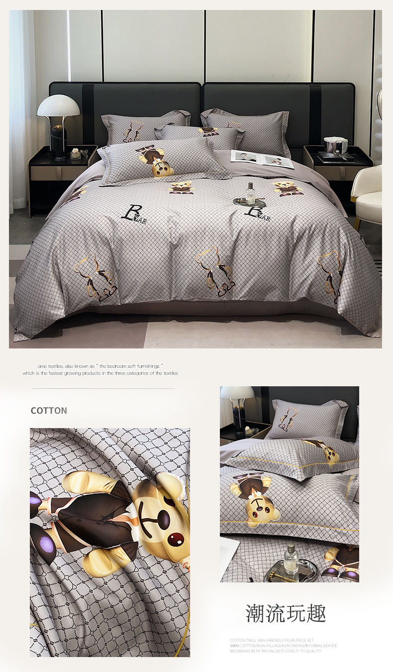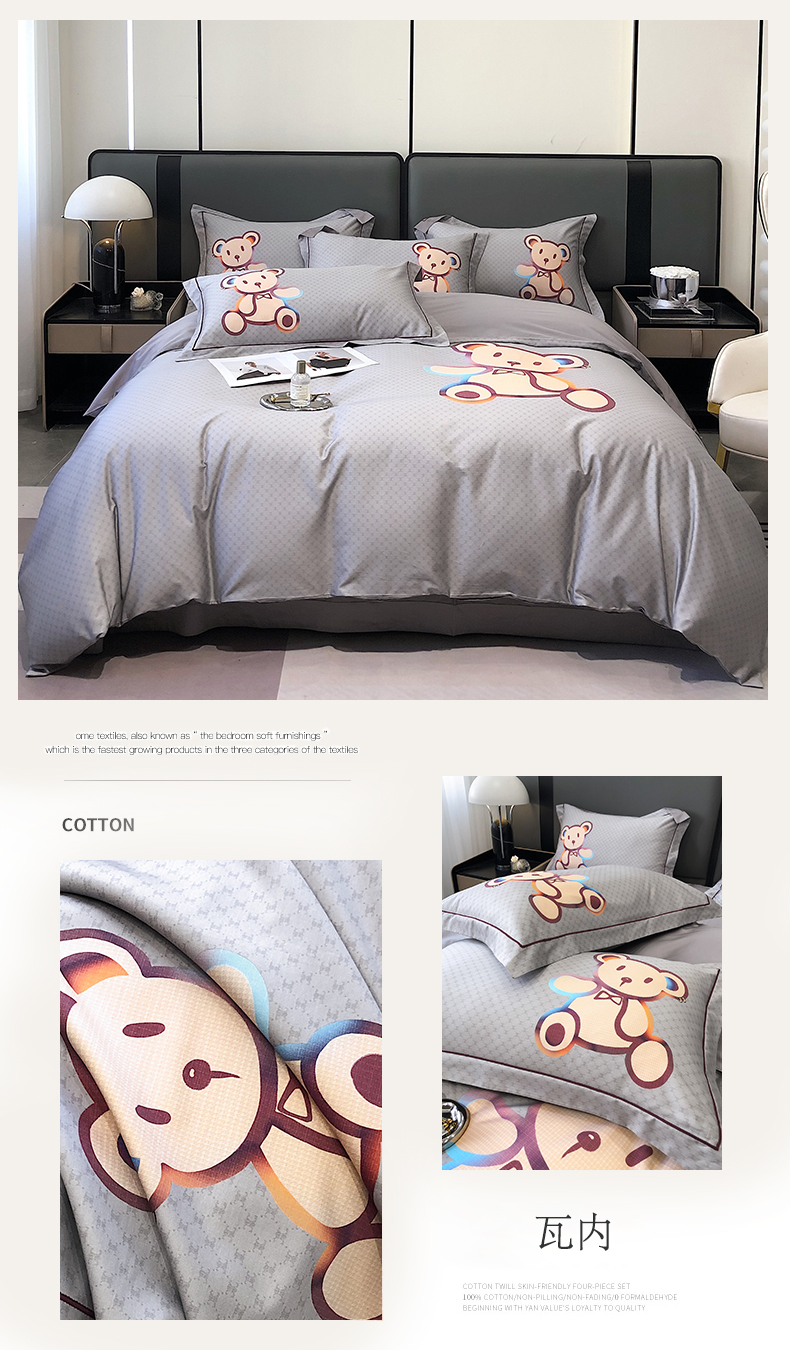 自然醒60支长绒棉泰迪熊四件套金太阳面料正版授权全棉轻奢潮尚大牌风床上用品KY