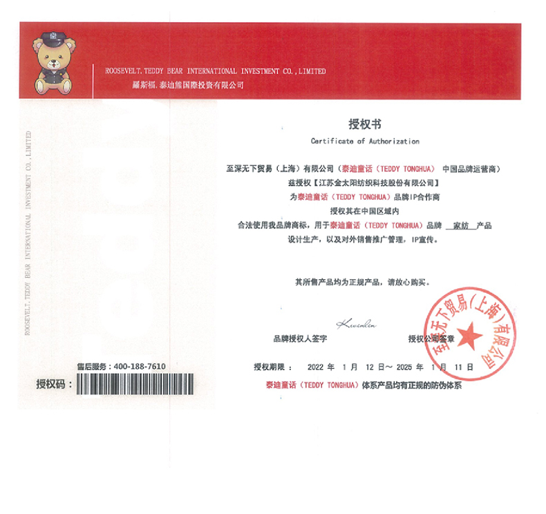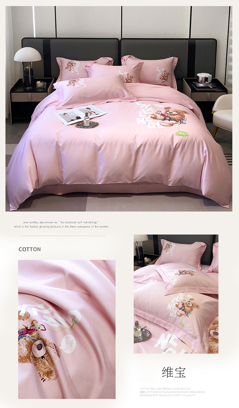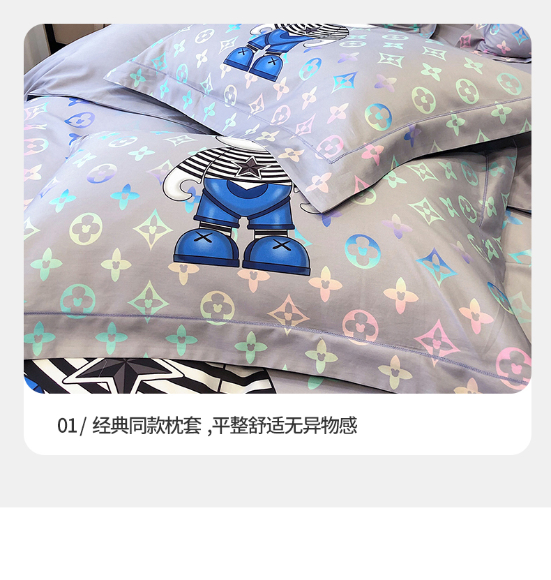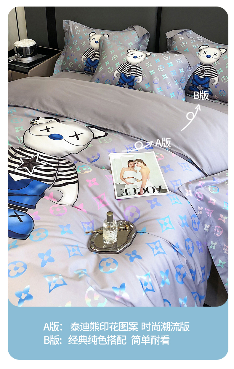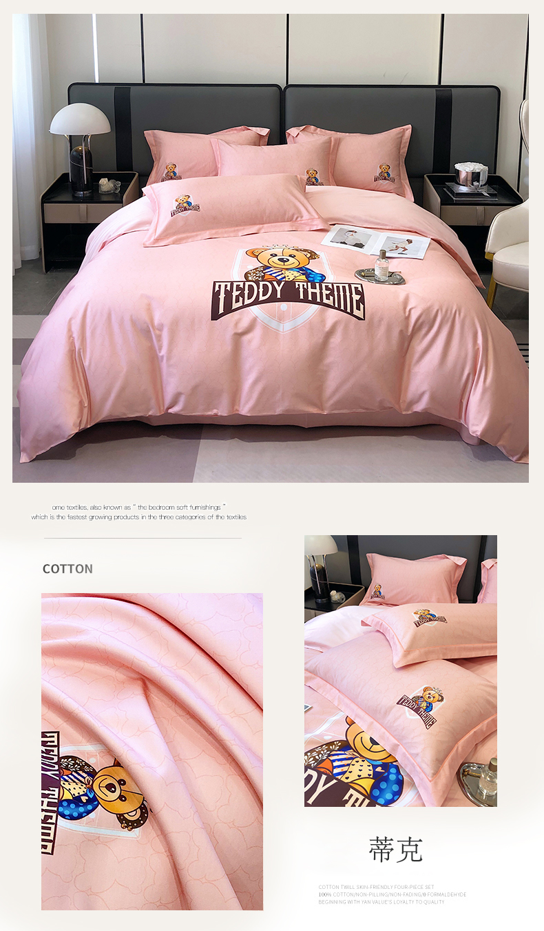 自然醒60支长绒棉泰迪熊四件套金太阳面料正版授权全棉轻奢潮尚大牌风床上用品KY