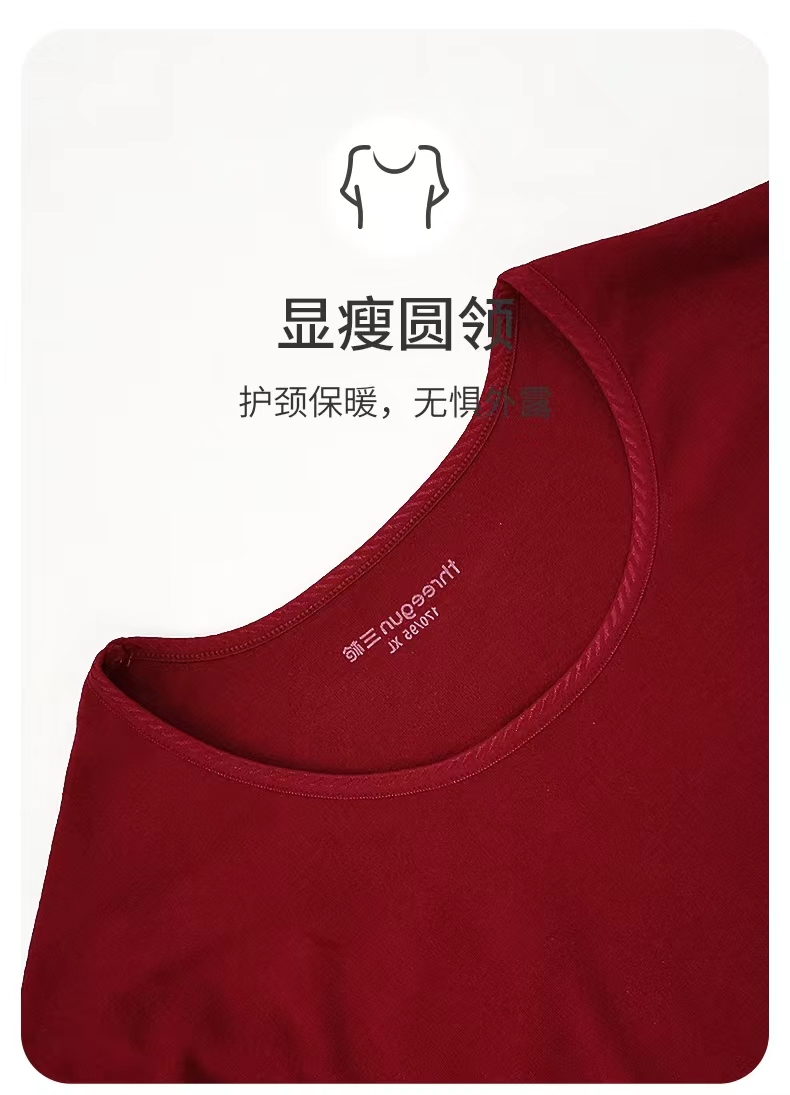 Threegun三枪 【舒肤棉】圆领女士保暖内衣套装-23702D021