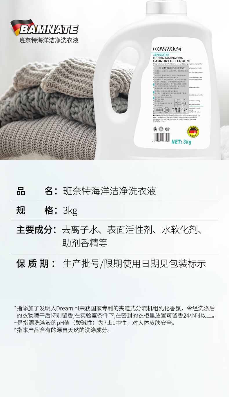 班奈特(海洋洁净)洗衣液-3kg【日化洗护】OLE
