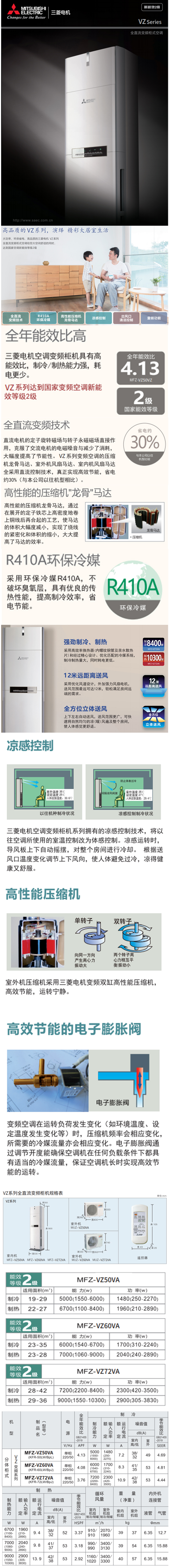 三菱电机MFZ-VZ72VA 3匹 柜机 空调 变频 冷暖 白色