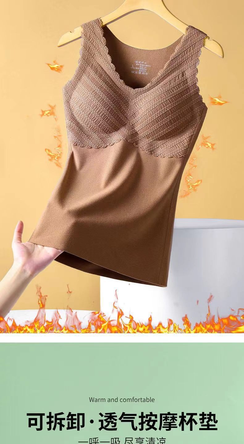 秋冬新款【德绒保暖背心】一体式加厚带胸垫 自发热修身打底保暖内衣