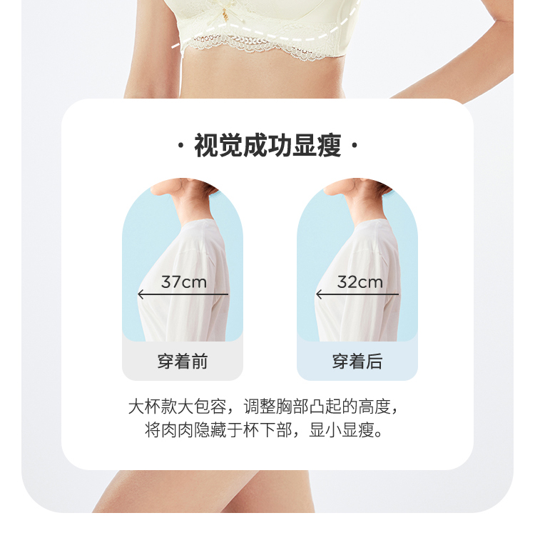都市丽人自然舒适常规内衣B杯薄3/4杯蕾丝文胸三排软钢圈LB32A2