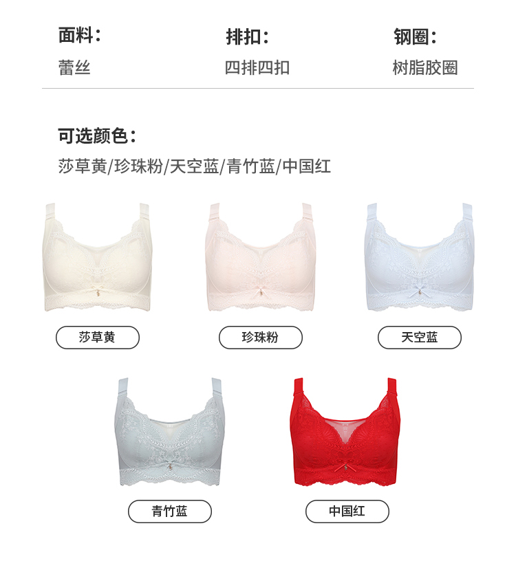 笔笔同款都市丽人自然舒适ABC杯适穿软泡芙蕾丝内衣三种厚度3/4杯常规文胸无钢圈三排扣新年本命年红品LB31M2