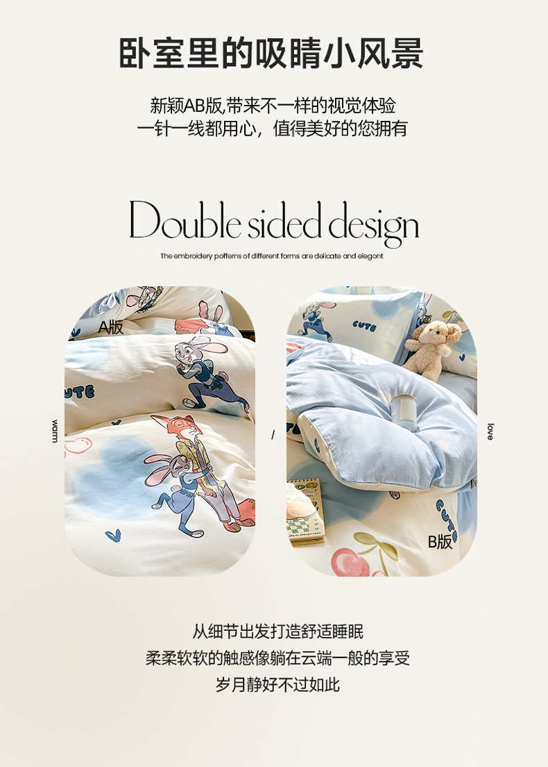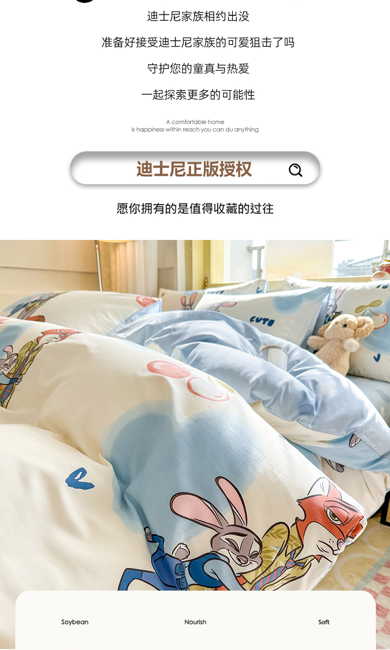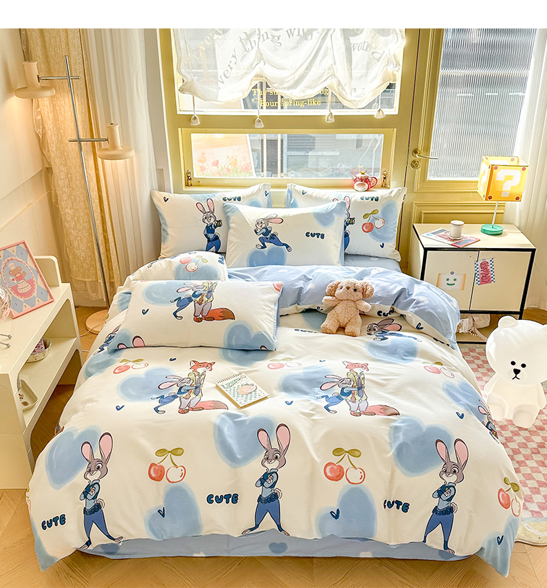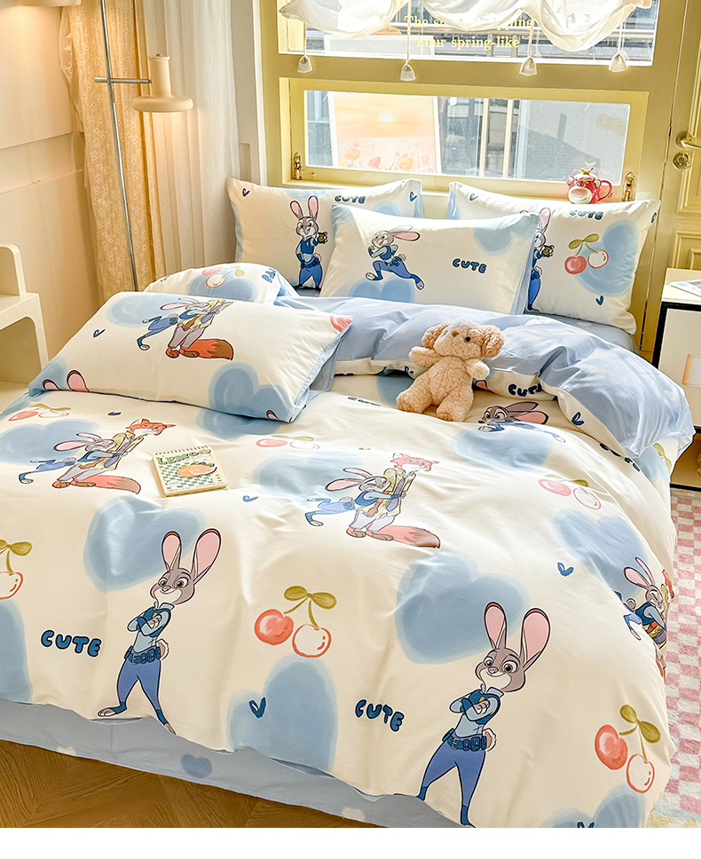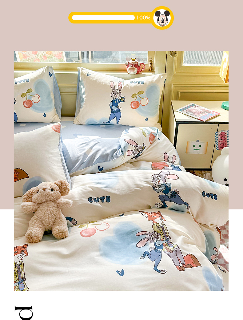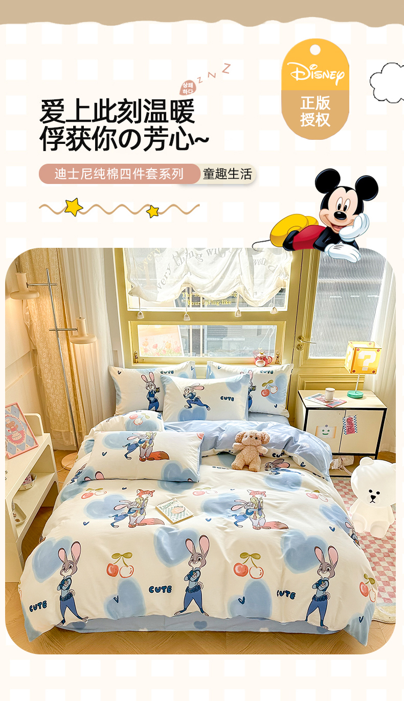 自然醒迪士尼卡通纯棉四件套100全棉床单四季被套学生宿舍床上三件套ins床笠JY