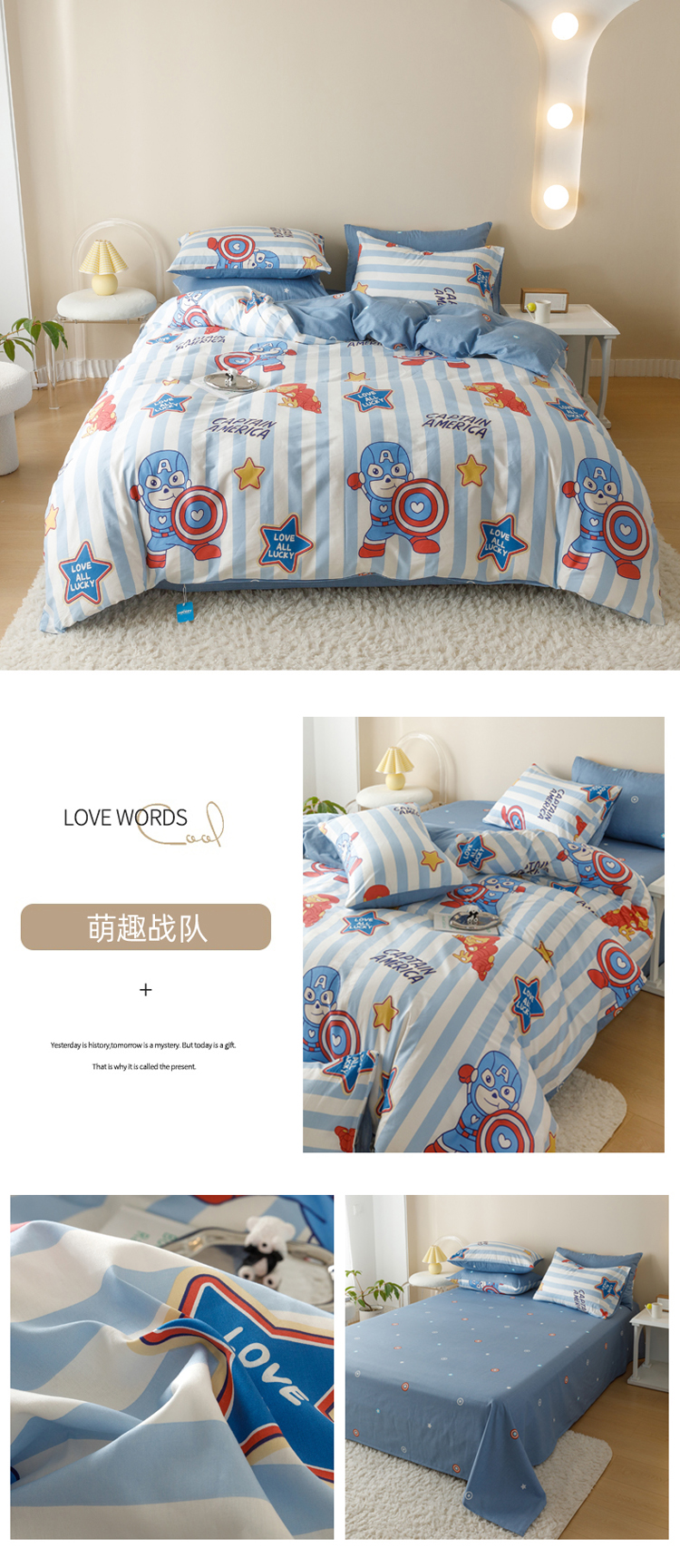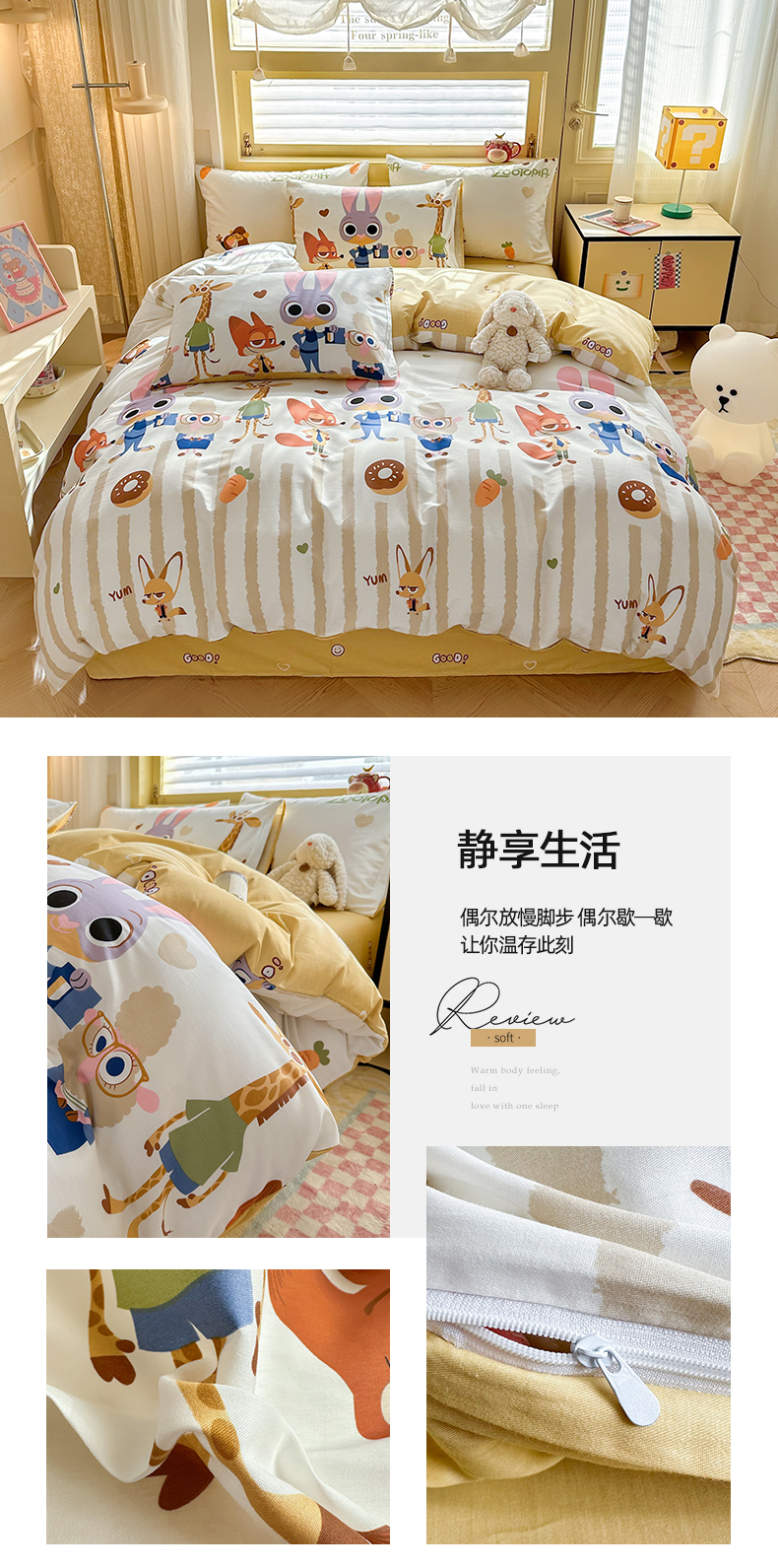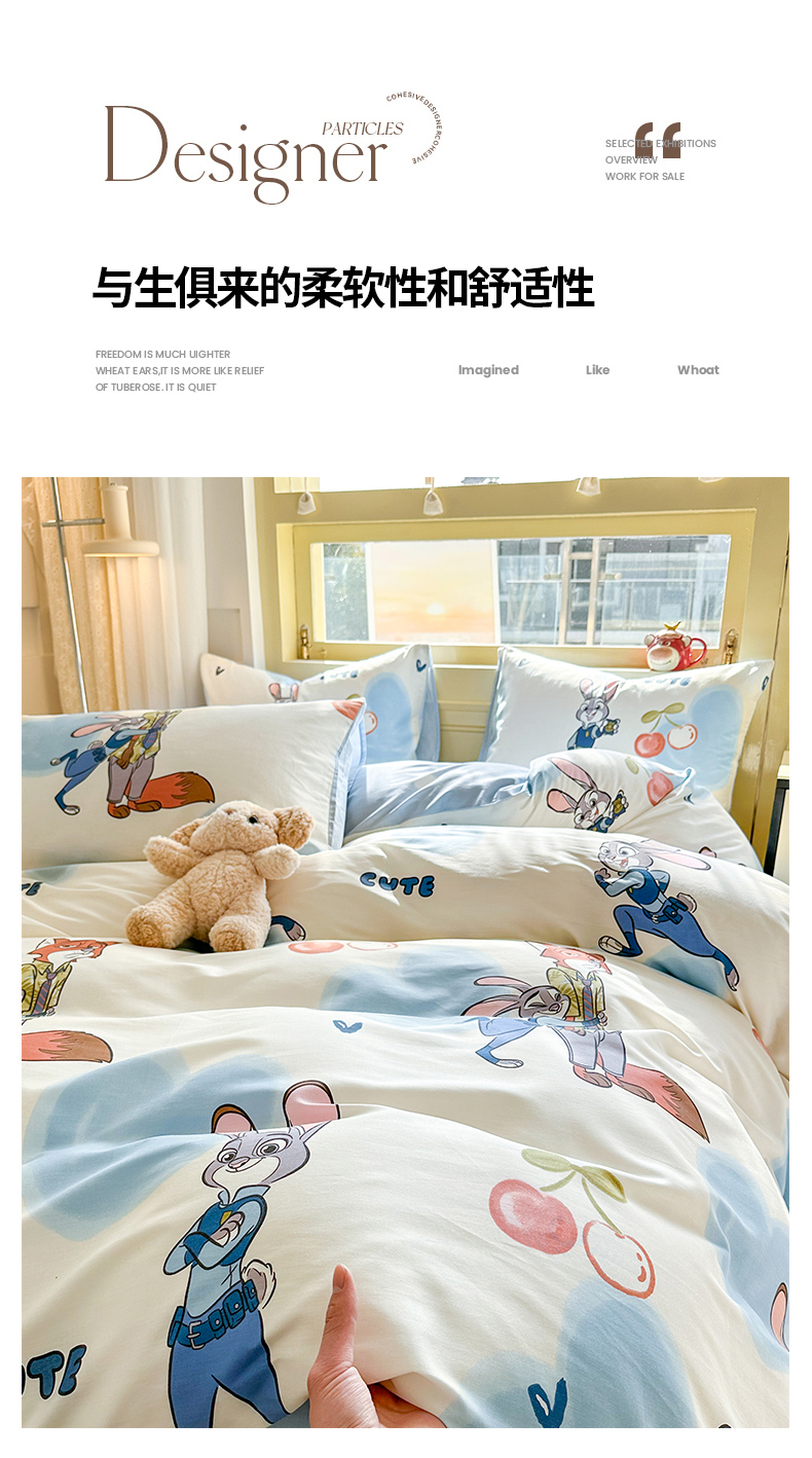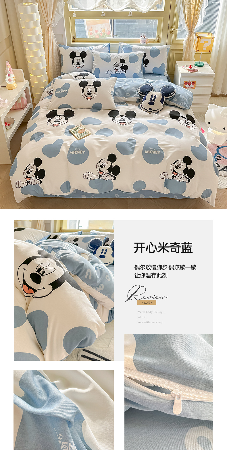 自然醒迪士尼卡通纯棉四件套100全棉床单四季被套学生宿舍床上三件套ins床笠JY