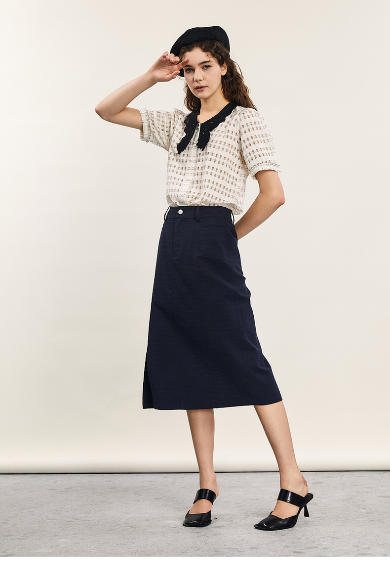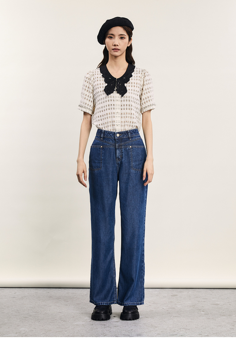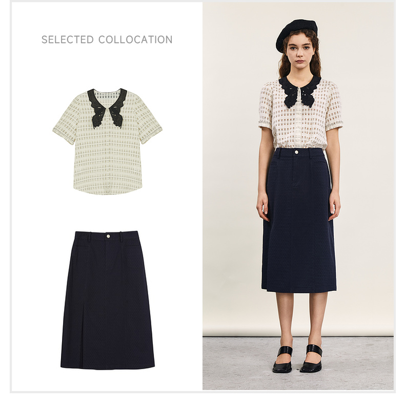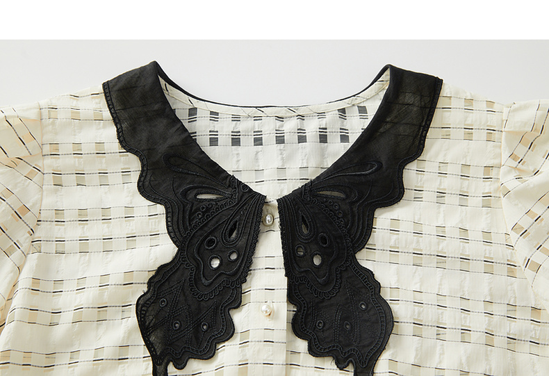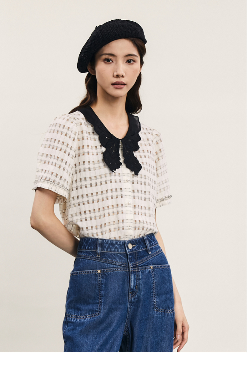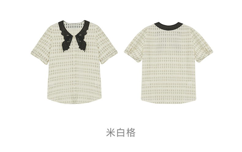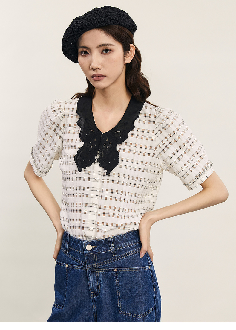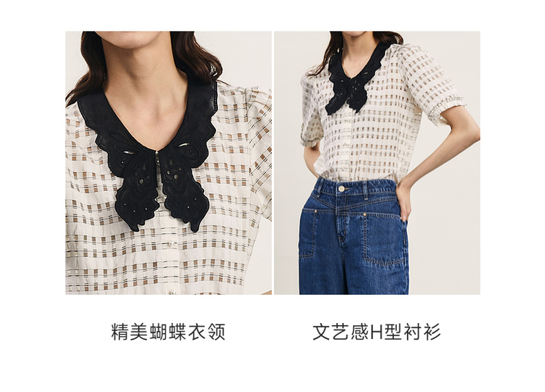 谜底提花衬衫短袖女2024年夏款通勤风蝴蝶衣领衬衣上衣242MC0613