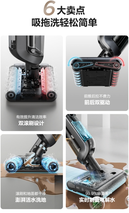 【小家电】苏泊尔自清洁烘干双滚刷洗地机WV-W86D