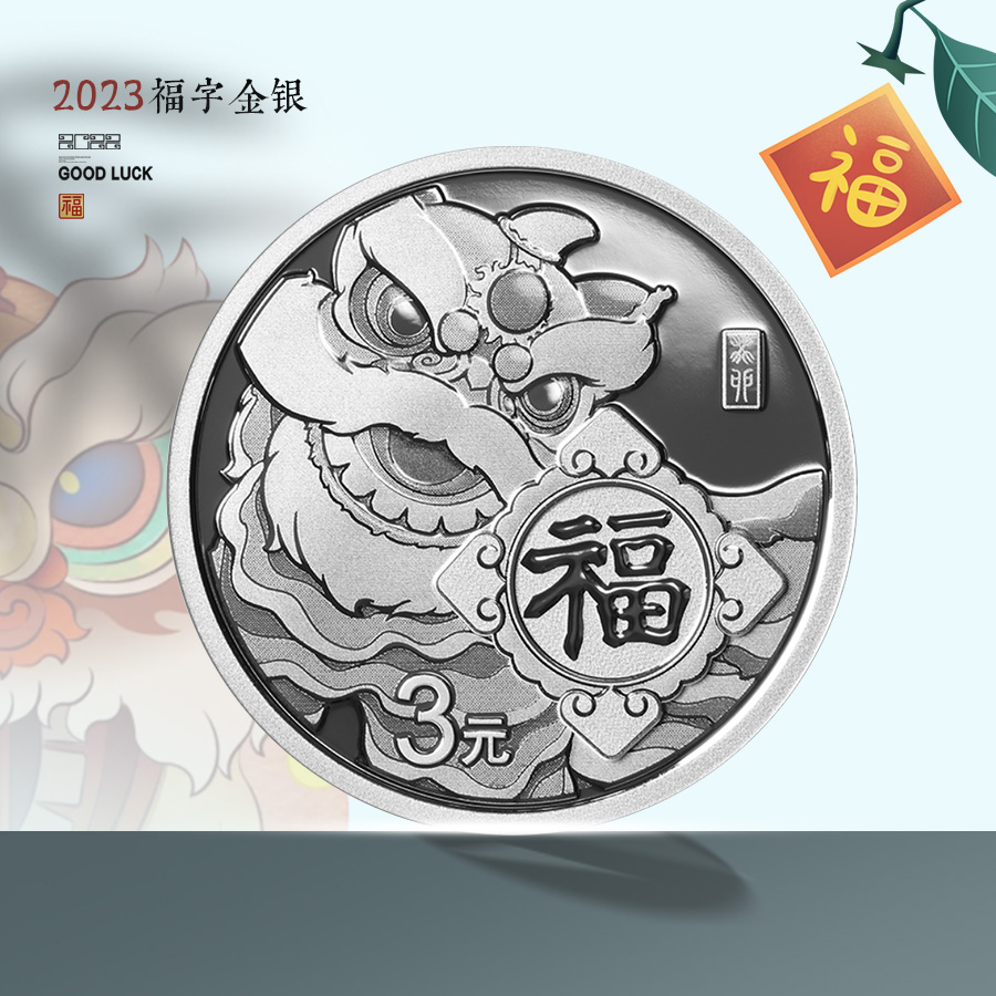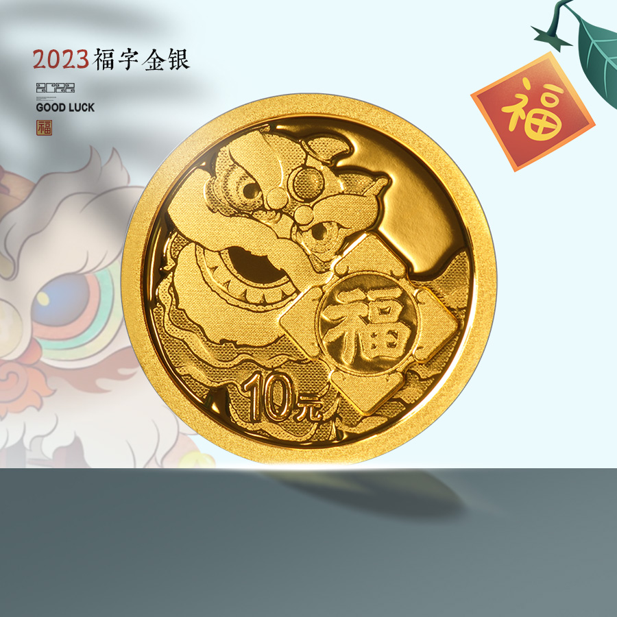 2023年贺岁福字币由中国人民银行发行,一套两枚,包含一枚1克金币,一枚8克银币。