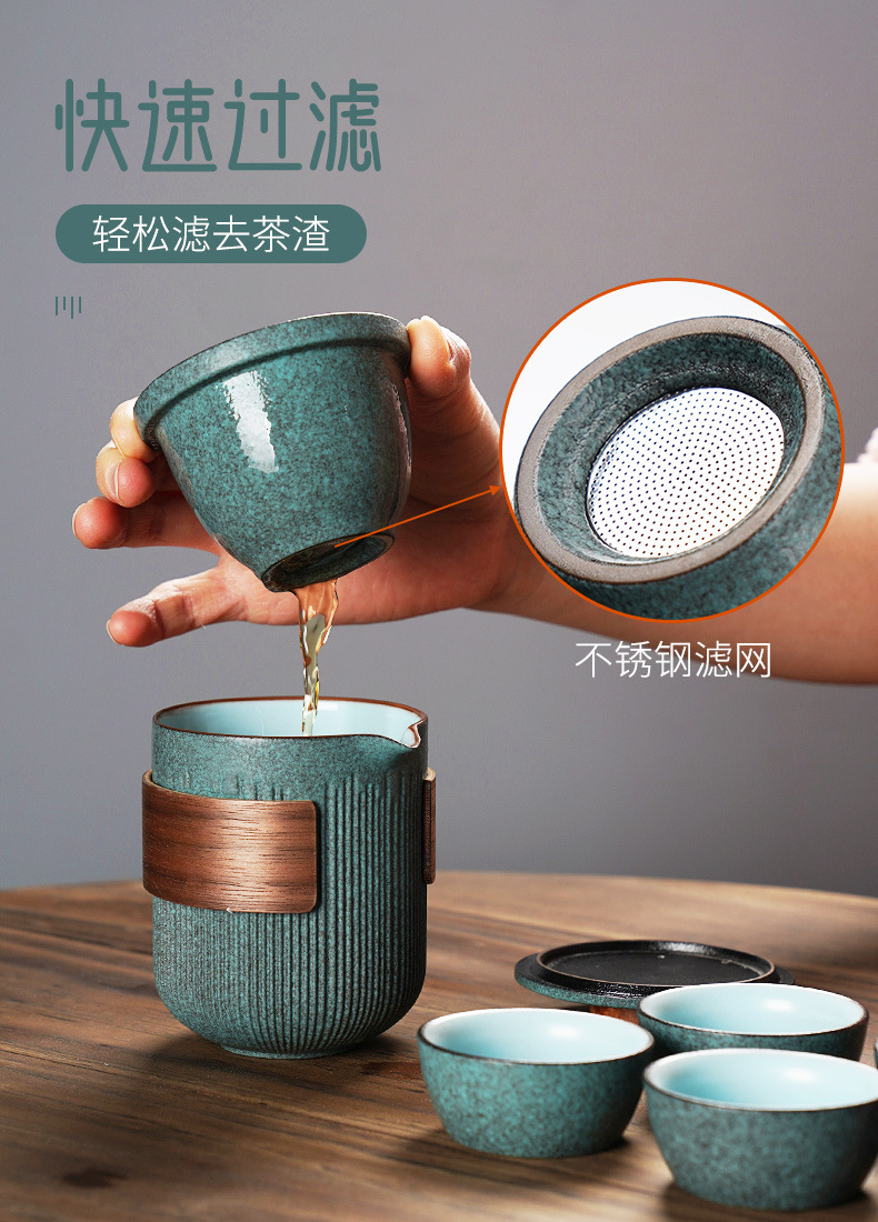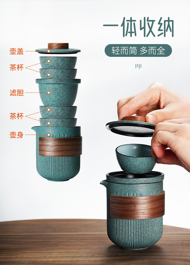 快客杯一壶一杯四人车载户外茶具1泡茶便携包式收纳功夫旅行套装