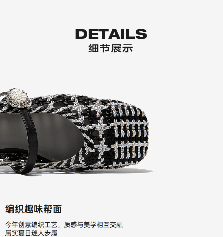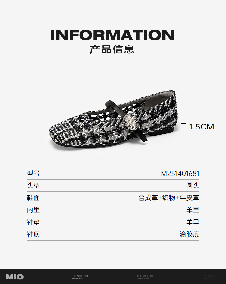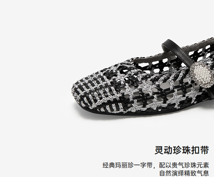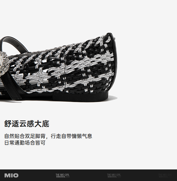 MIO米奥玛丽珍鞋编织镂空质感平底法式单鞋女渔夫鞋M251401681