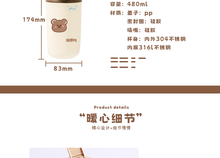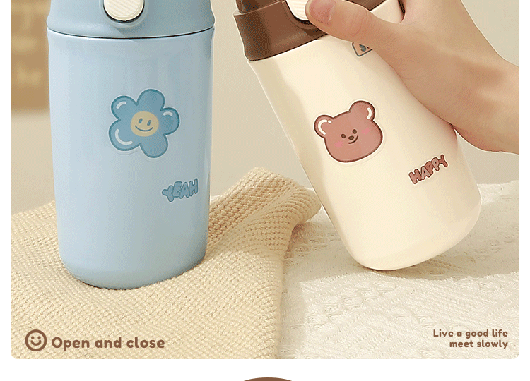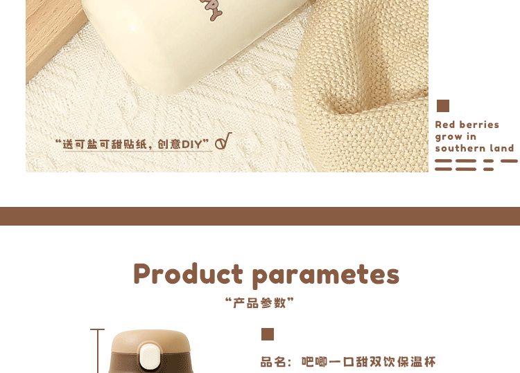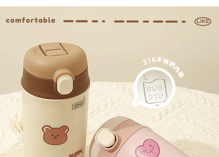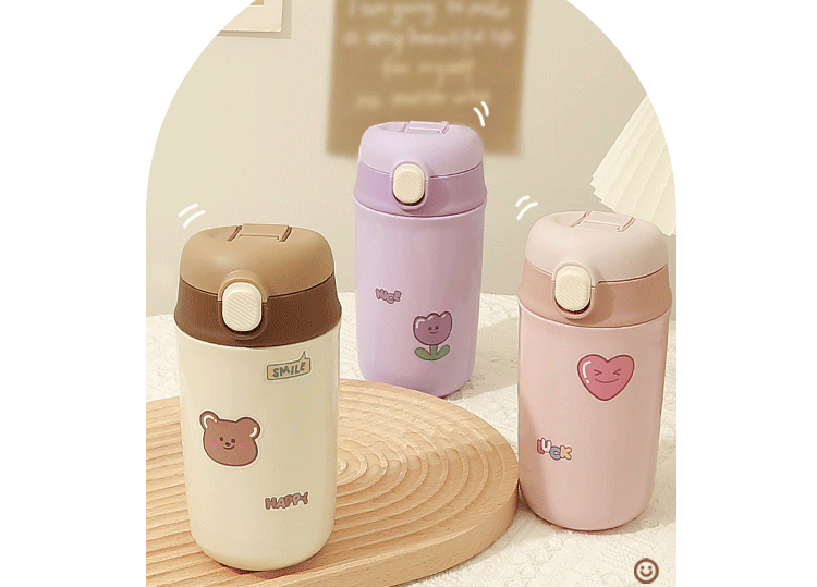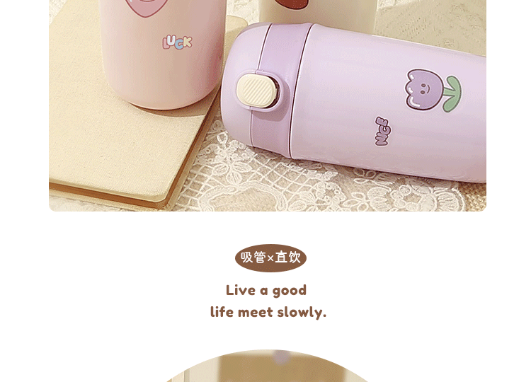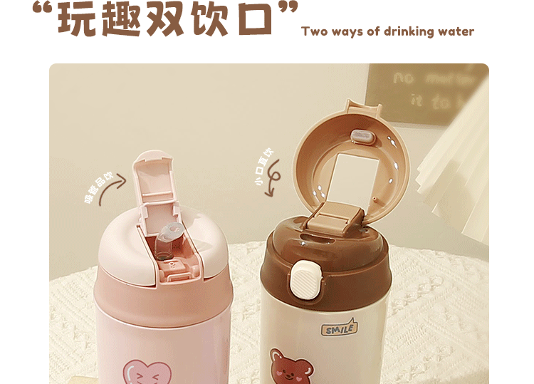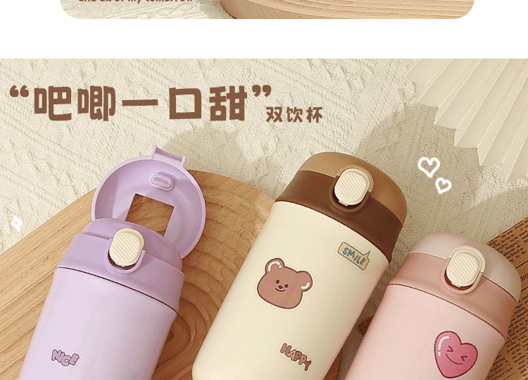 「四款配色!玩趣双饮口」创意颜值咖啡杯便携式不锈钢保温杯简约学生双饮吸管杯女生水杯餐饮用具