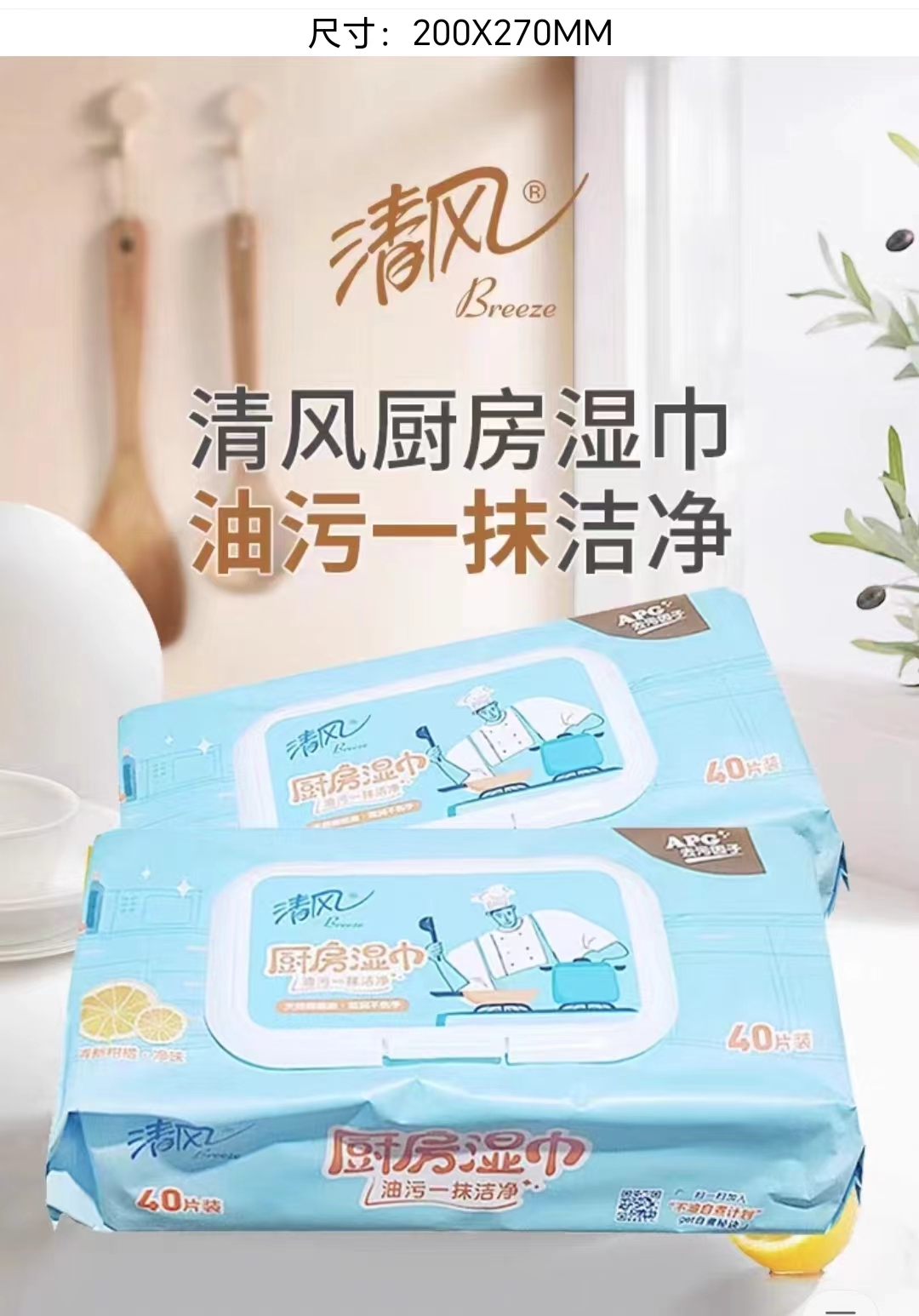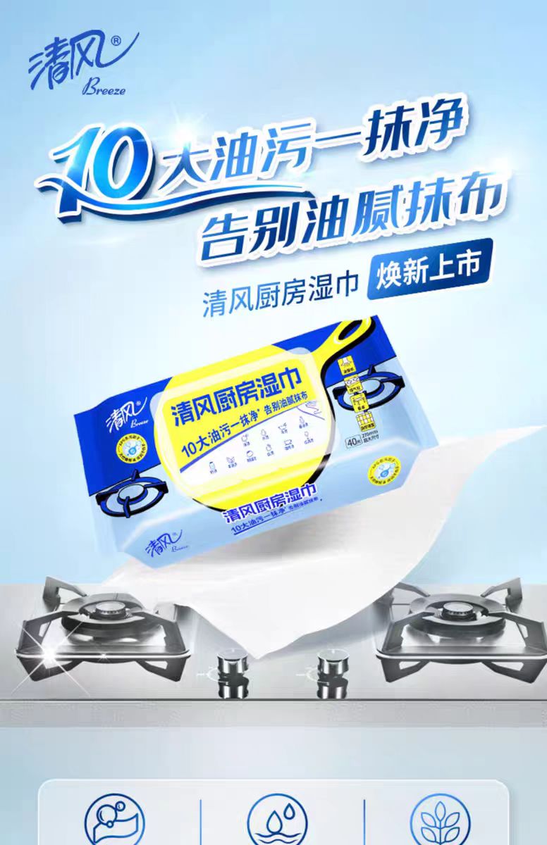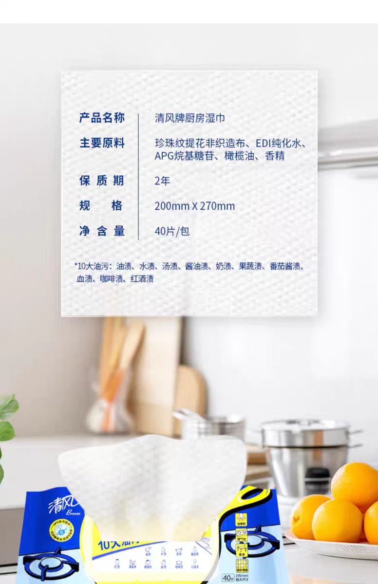 清风 厨房湿纸巾40片装(新旧包装随机发货)
