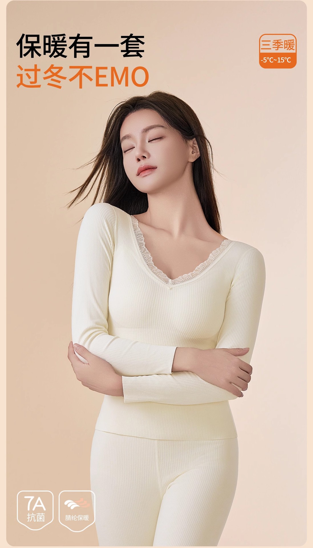 【山羊绒&蚕丝保暖套装】带胸垫德绒保暖内衣,山羊绒蚕丝, 7A抗菌亲肤加绒发热无痕打底套装免文胸保暖黑科技!7A抗菌+山羊绒蚕丝,温暖养肤一整冬💖