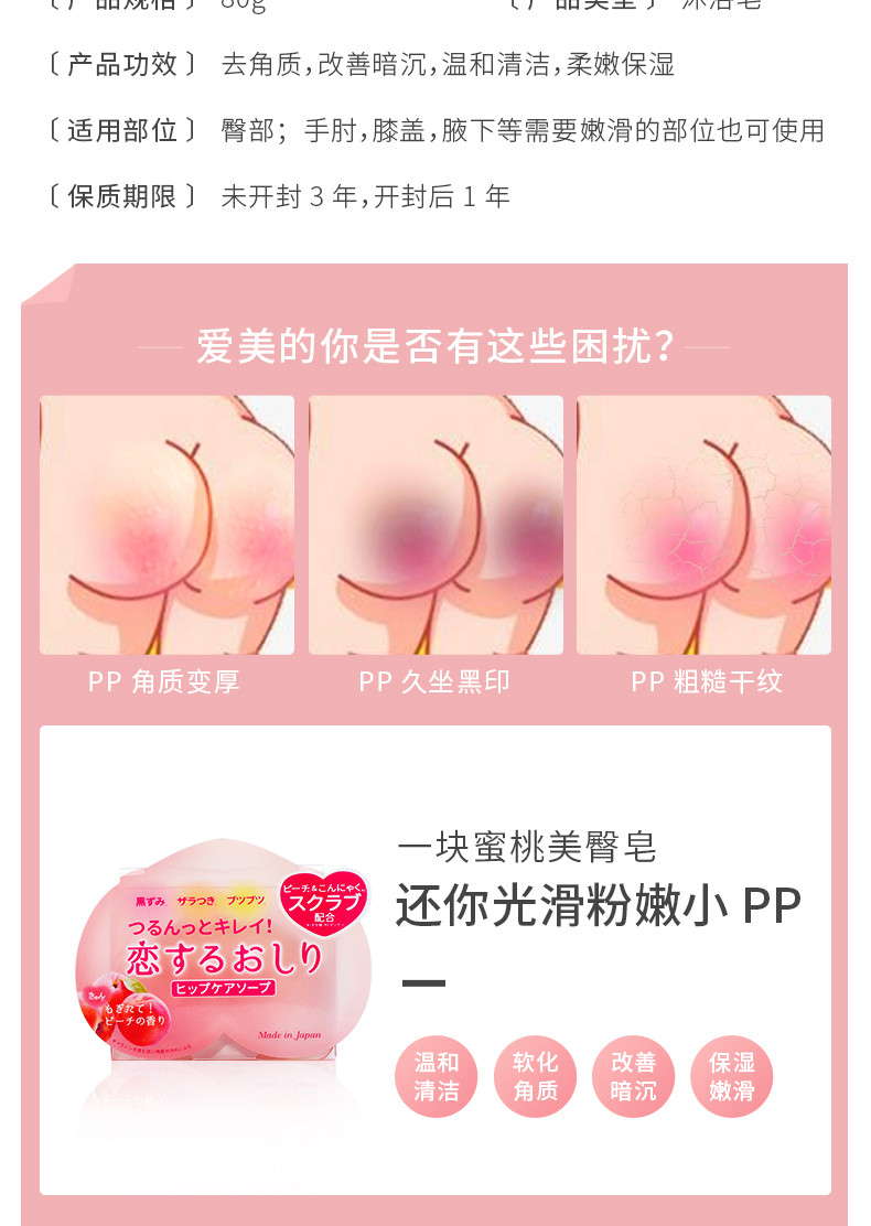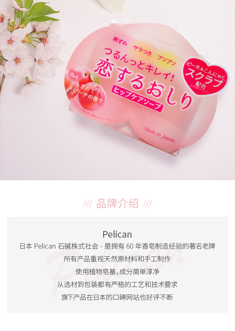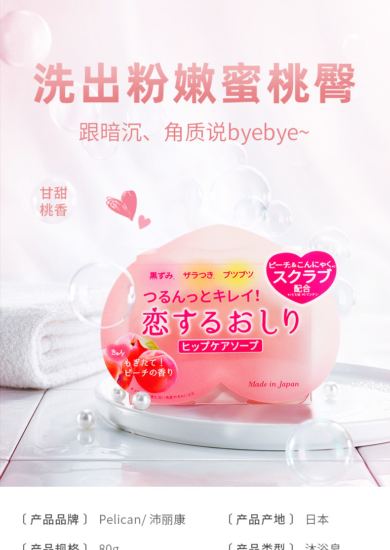 PELICAN沛丽康 桃子美臀屁屁去黑去角质护理皂 80G日本