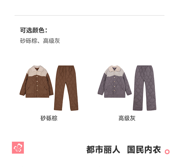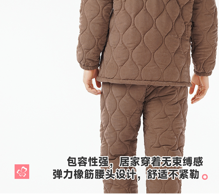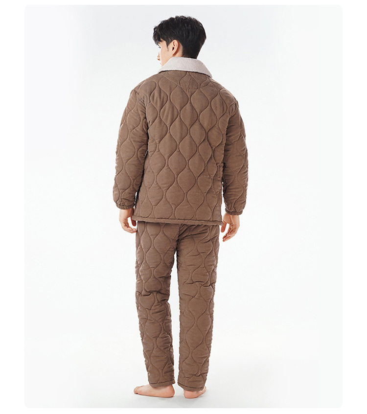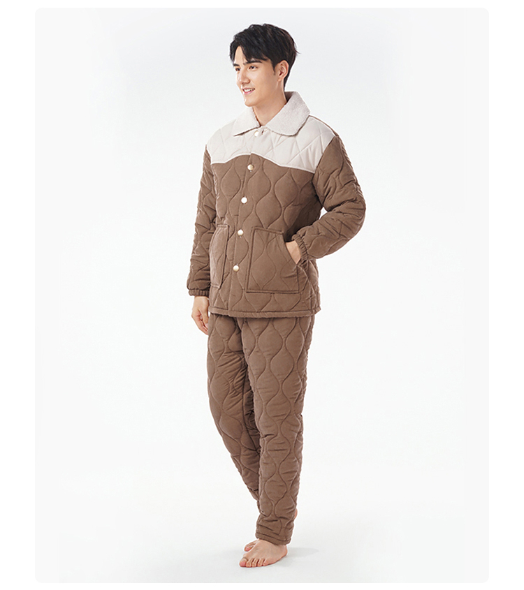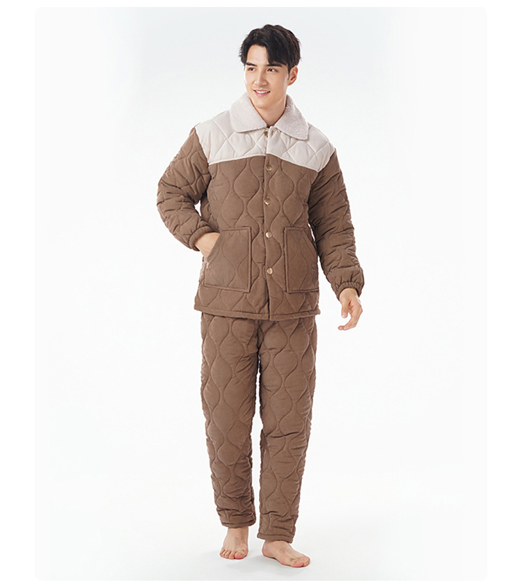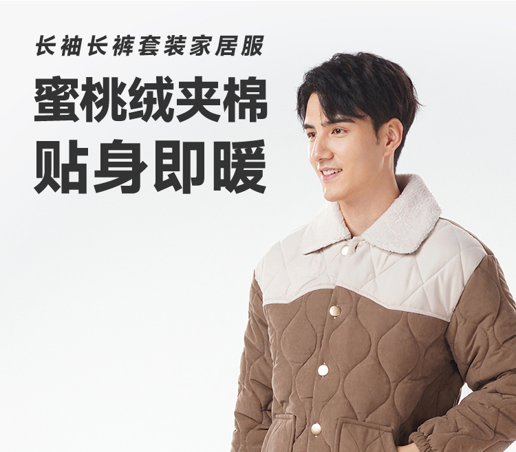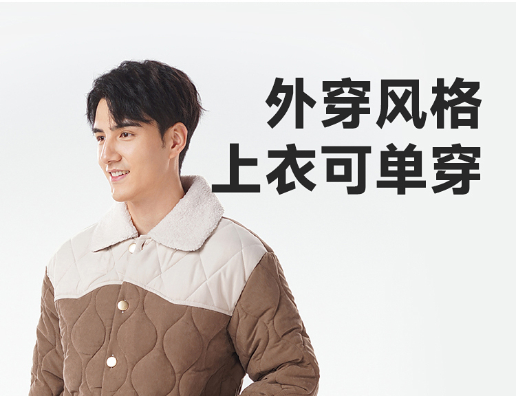 都市丽人睡衣蜜桃绒夹棉男士家居服长袖长裤加厚夹棉套装FHH1E2