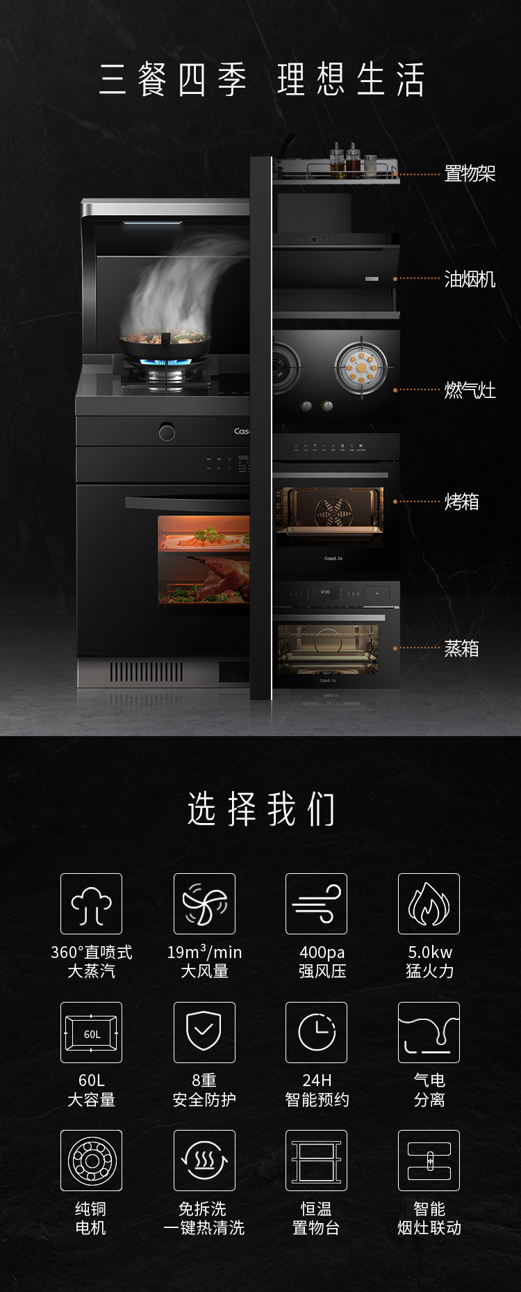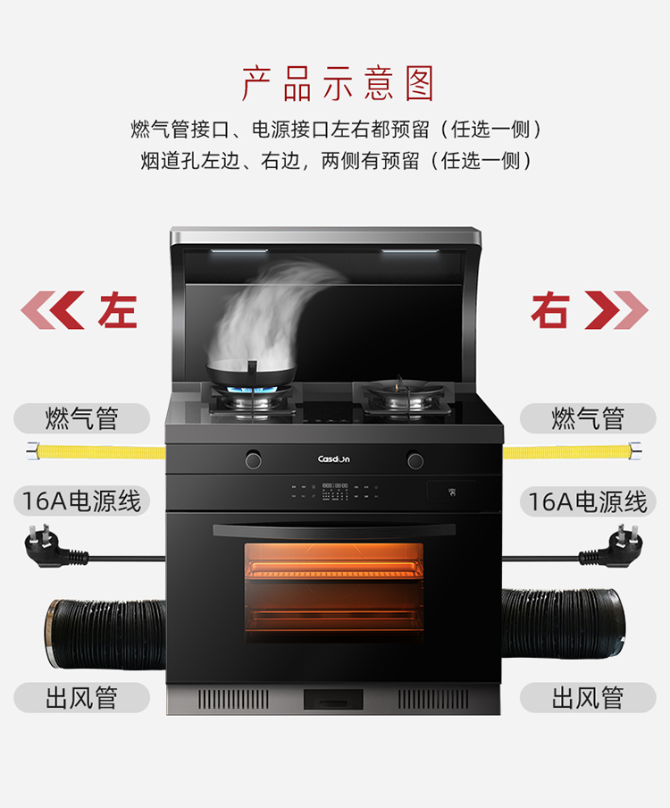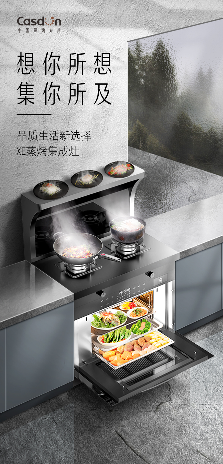 CASDON/凯度 XE集成灶大火力自动清洗侧吸油烟灶家用蒸烤箱一体灶