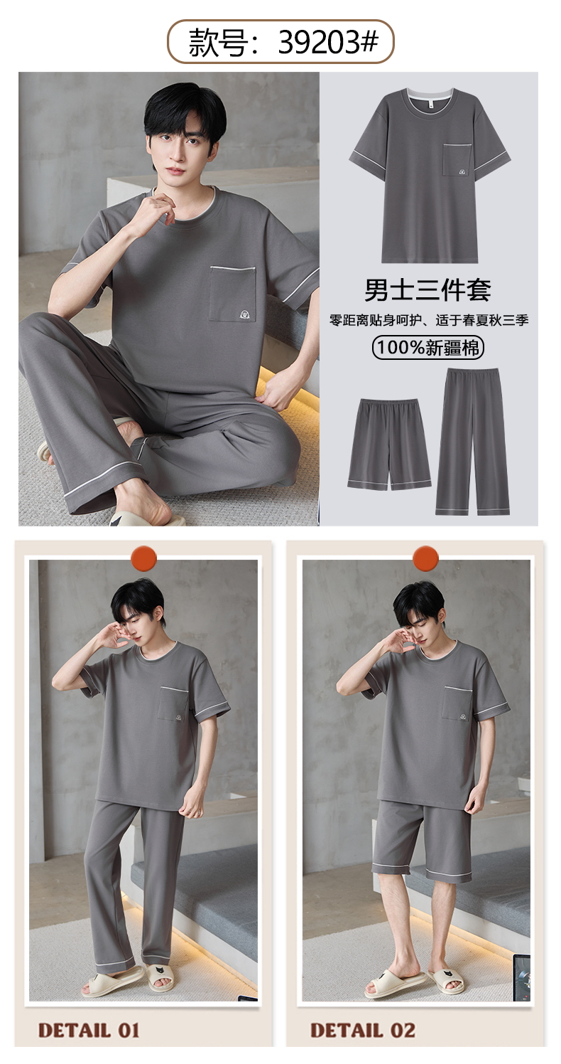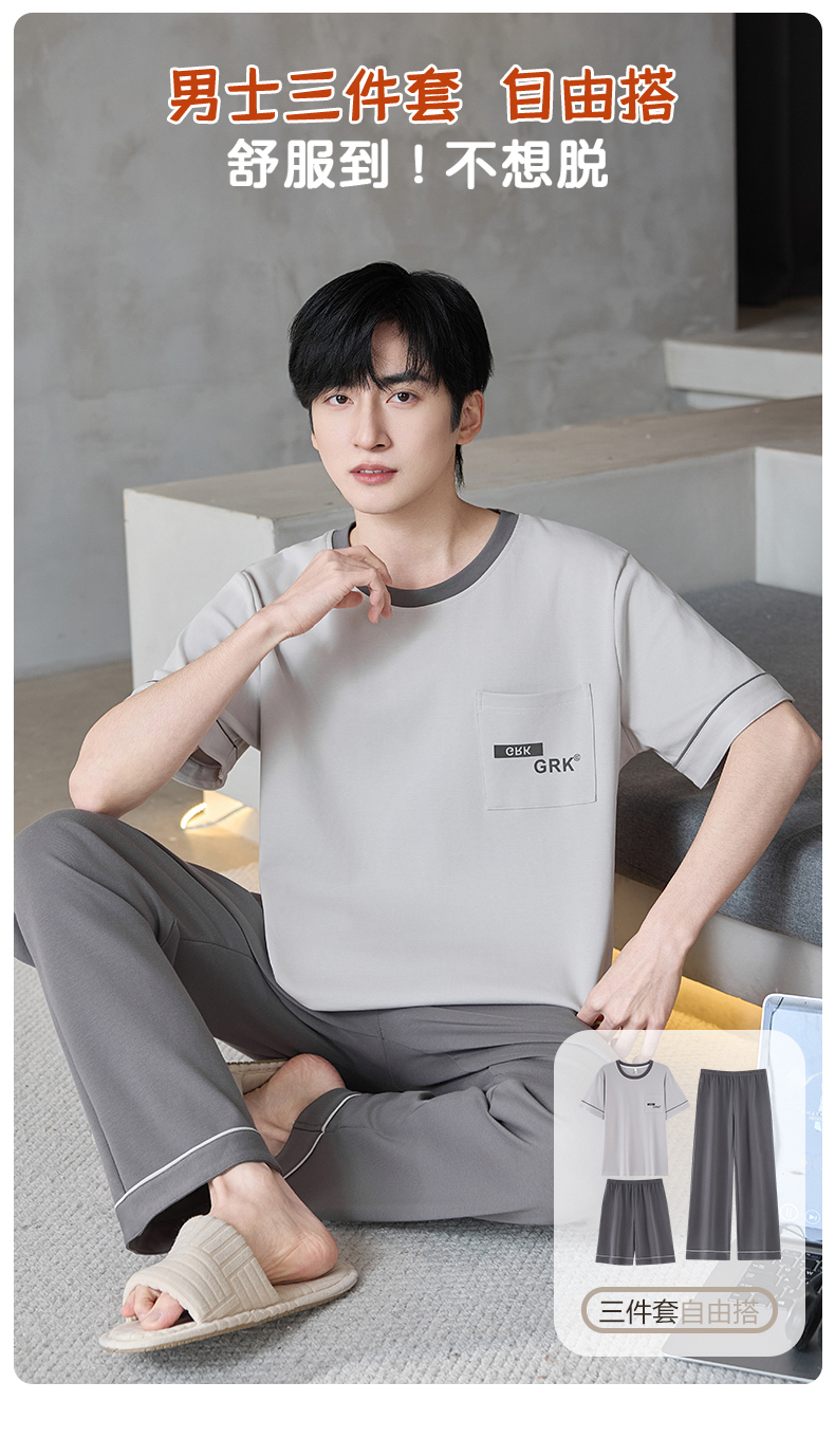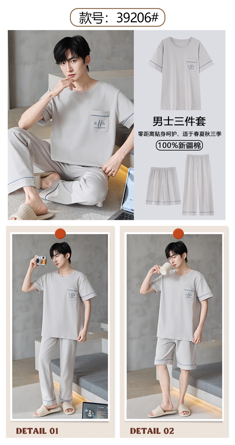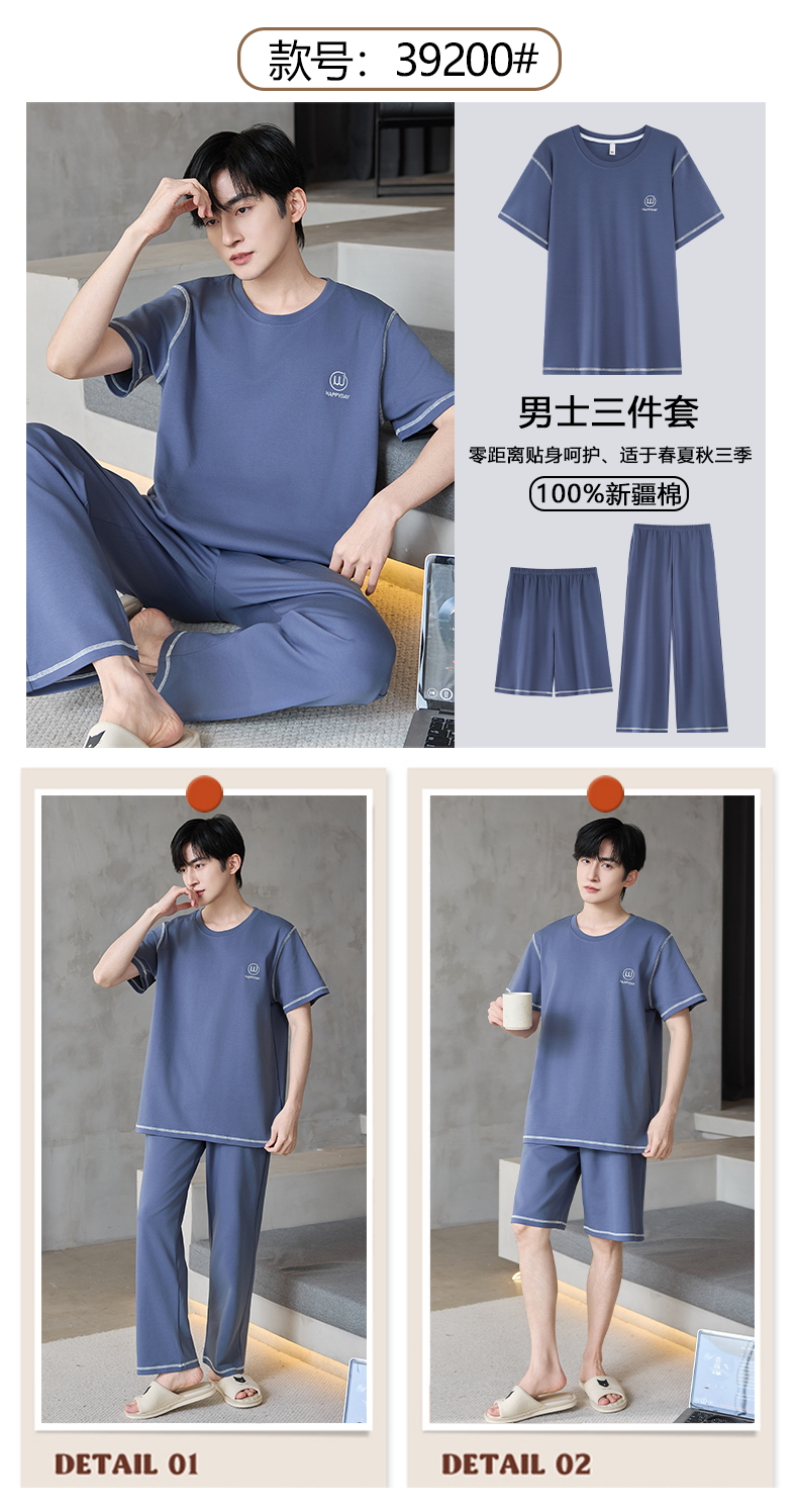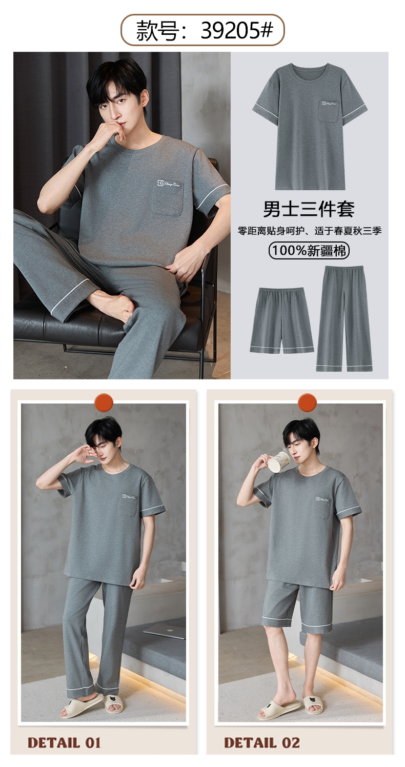 【初夏焕新】自然醒逸居男士家居服100%棉短套头三件套睡衣QH