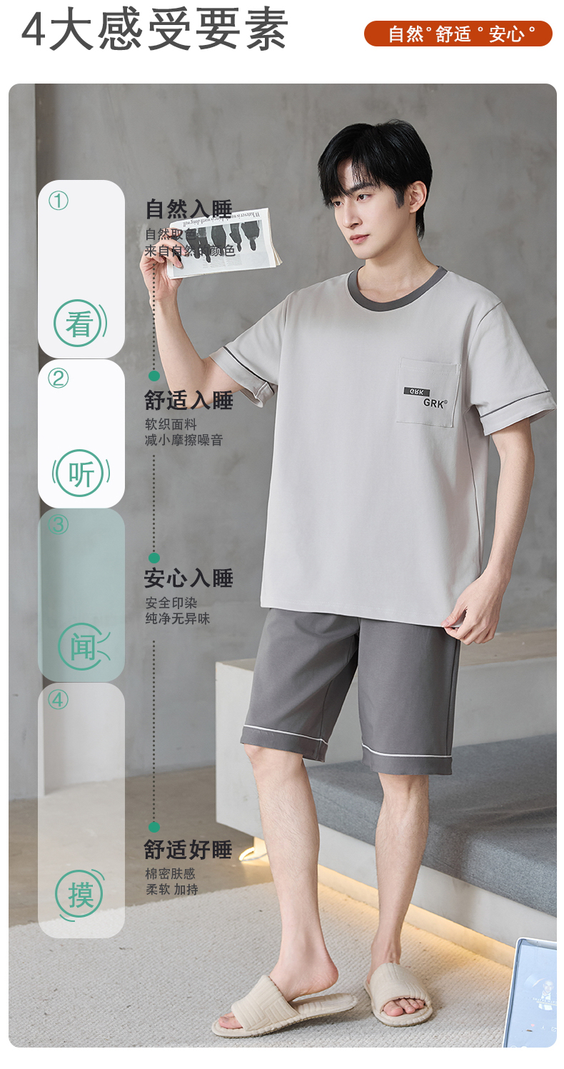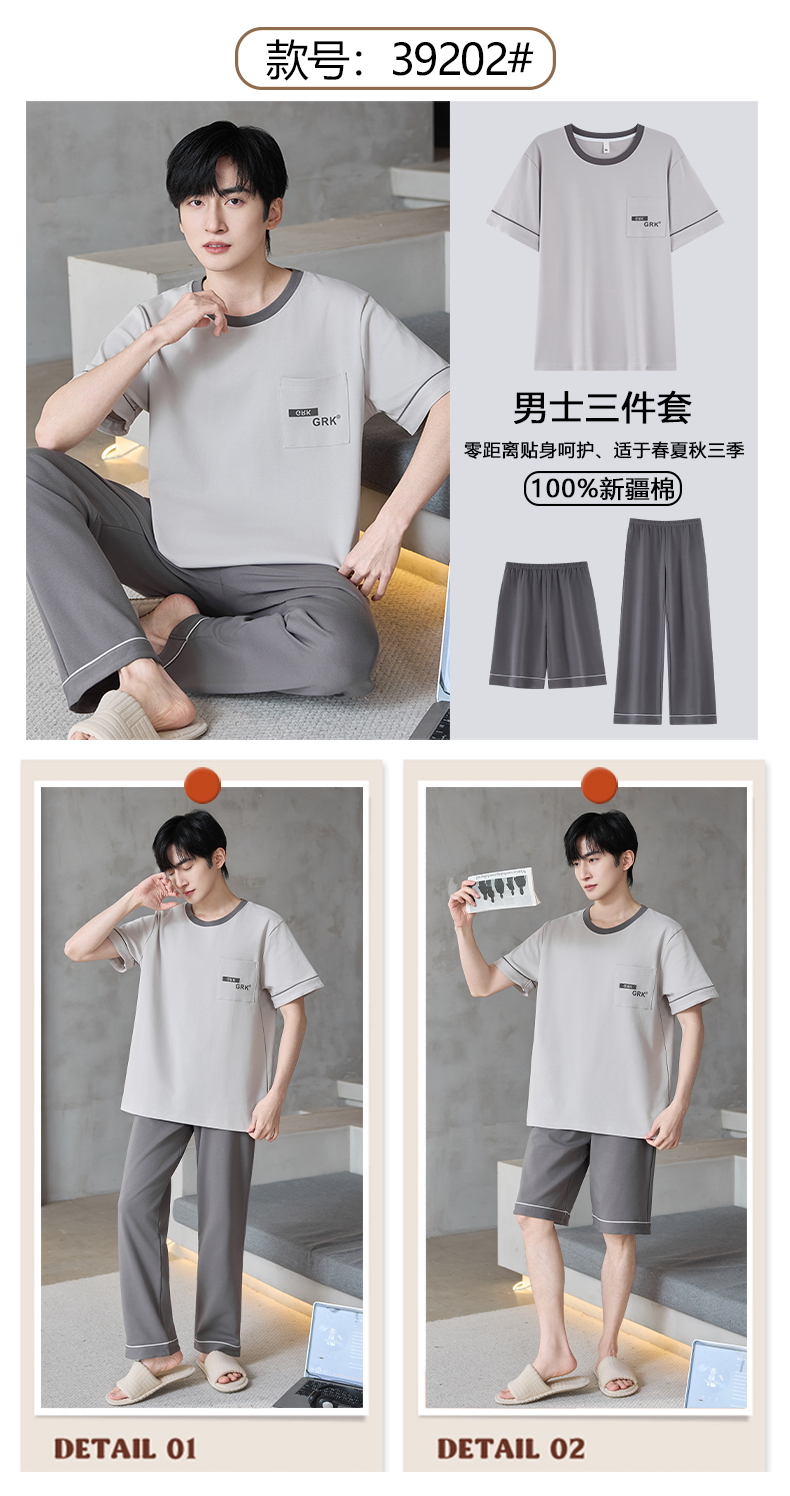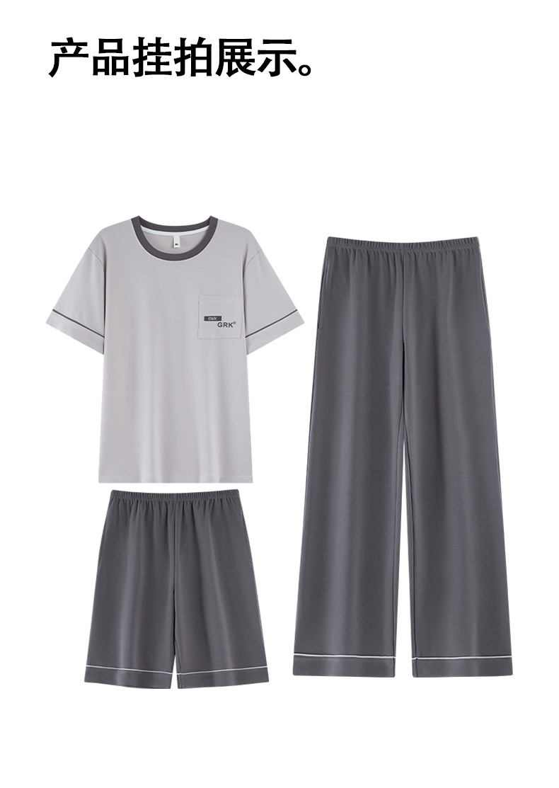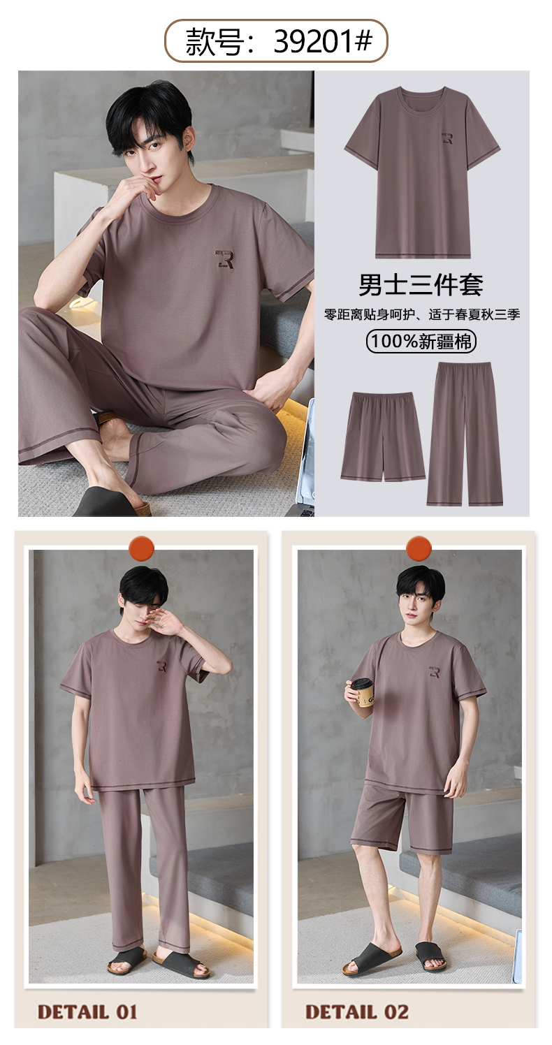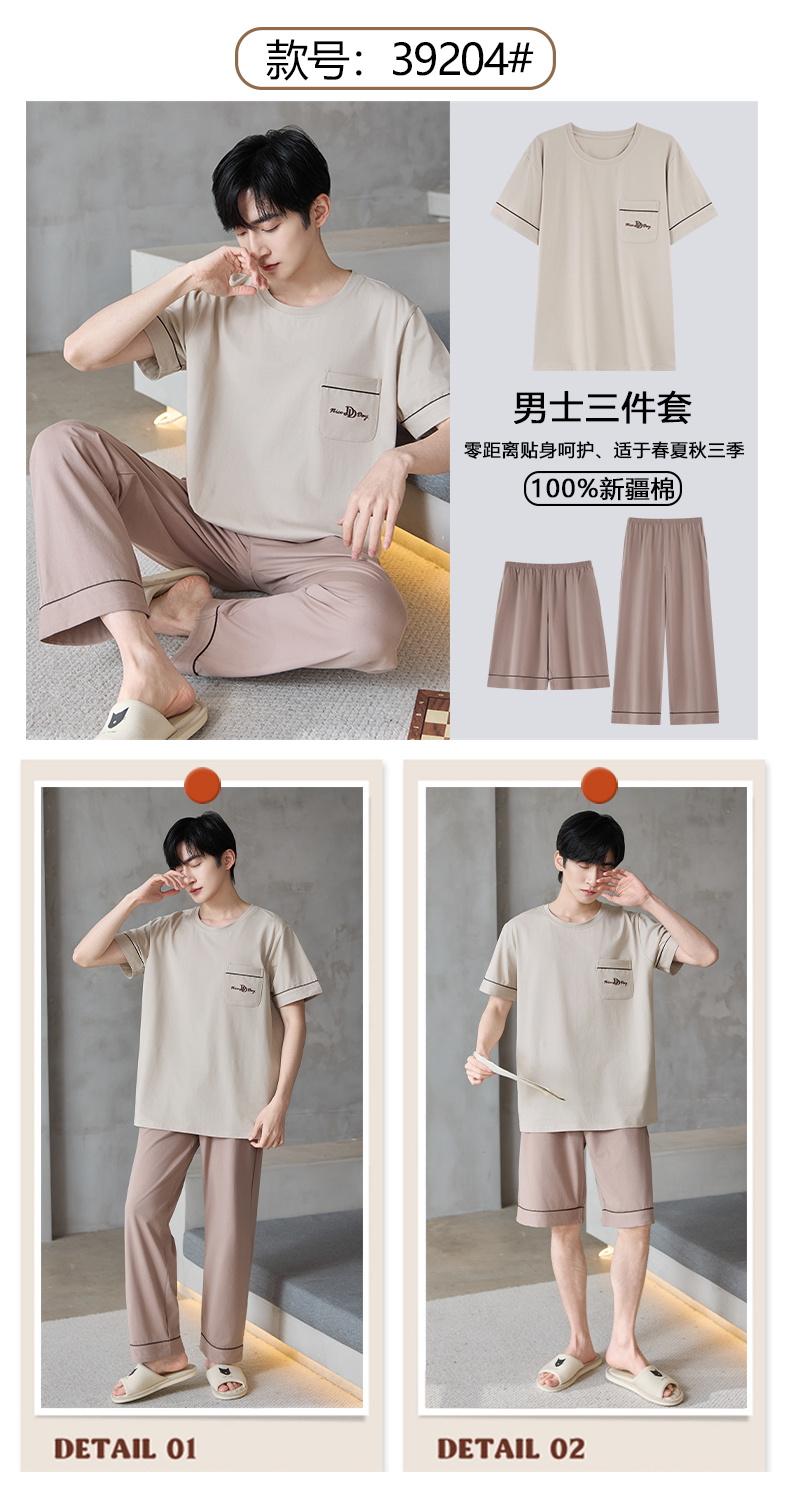 【初夏焕新】自然醒逸居男士家居服100%棉短套头三件套睡衣QH