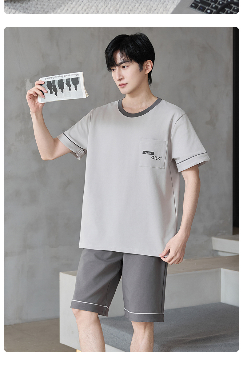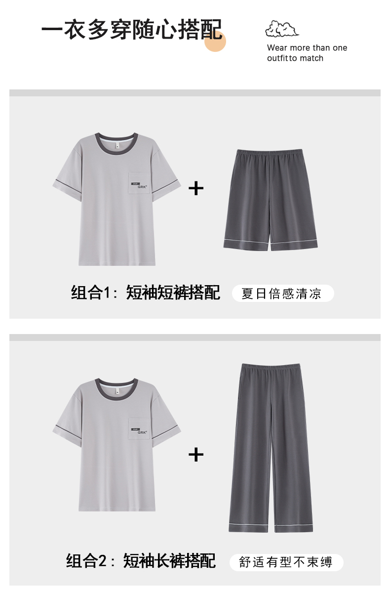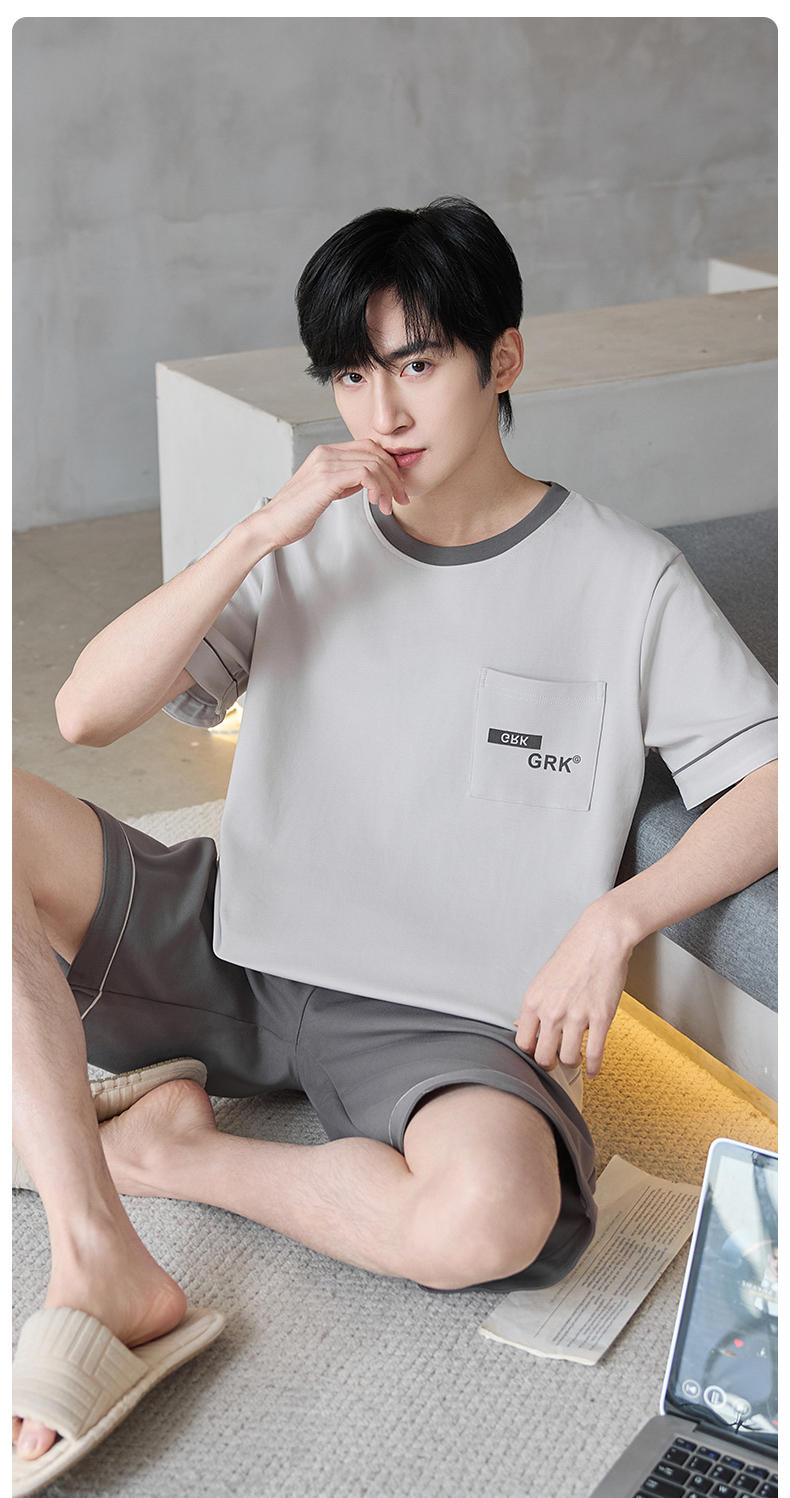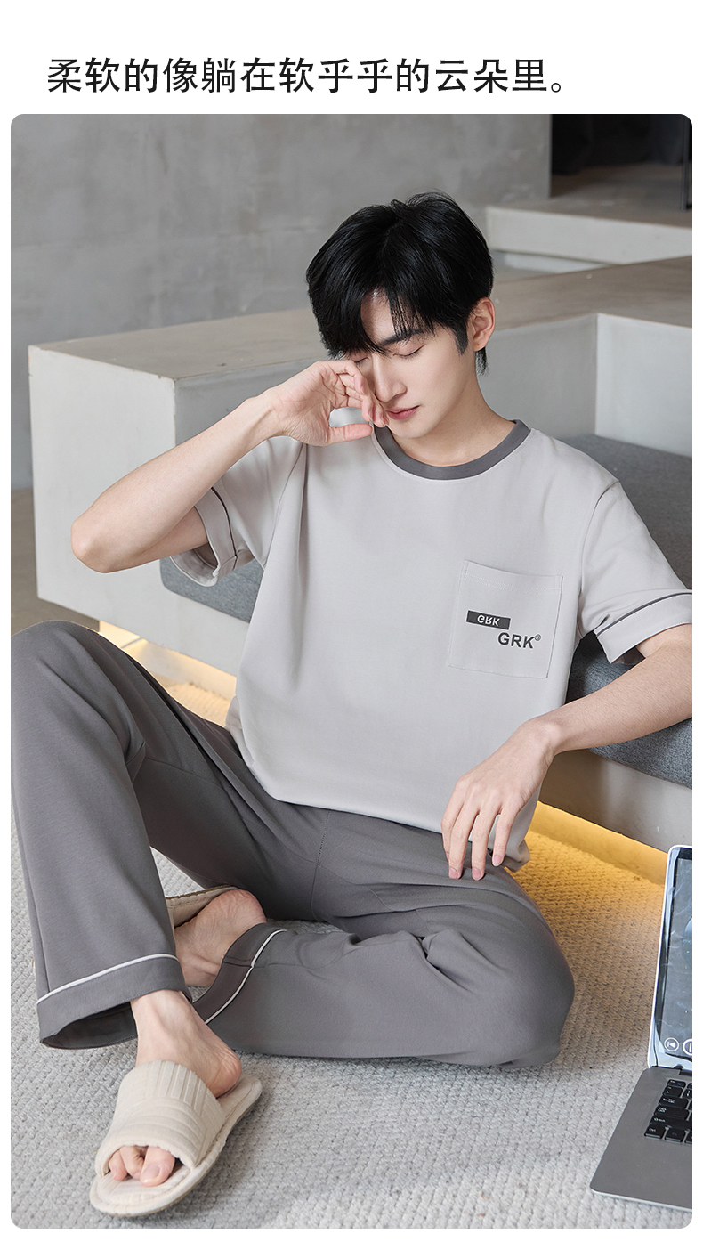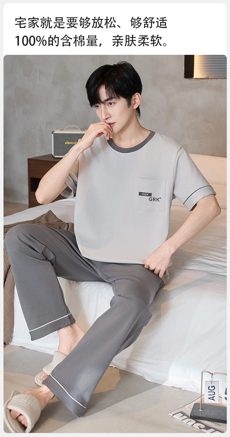 【初夏焕新】自然醒逸居男士家居服100%棉短套头三件套睡衣QH