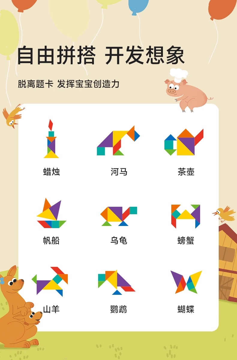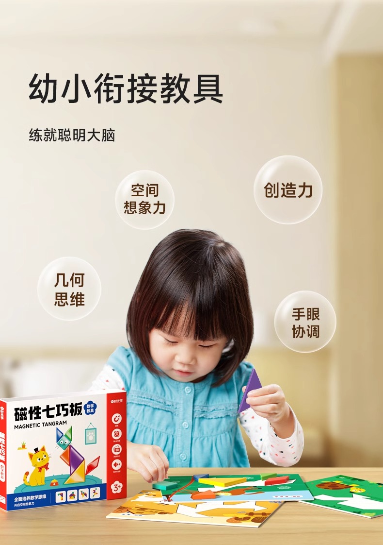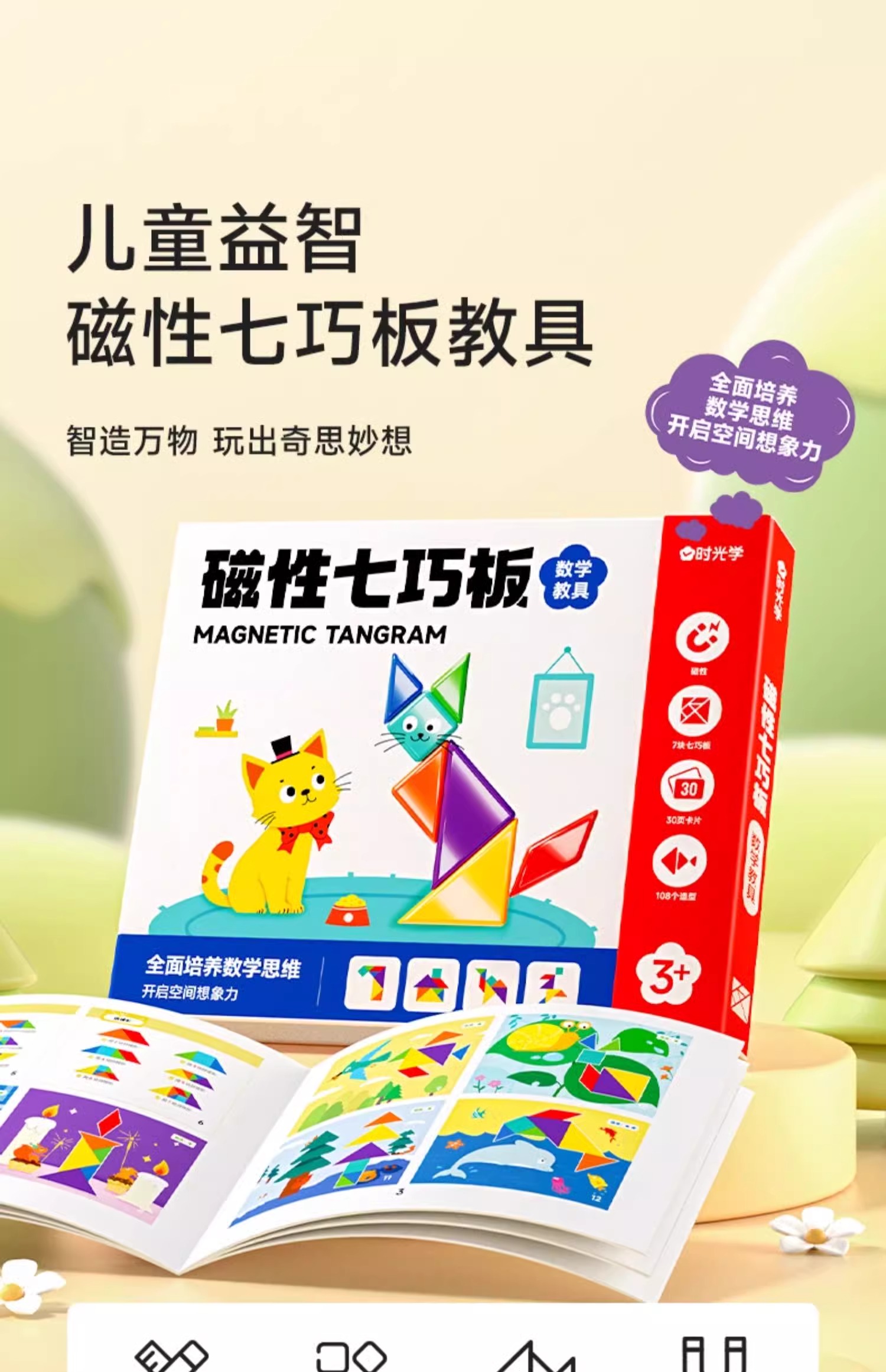 【同步小学课本内容】时光学磁性七巧板智力拼图幼儿园宝宝小学生益智磁力玩具