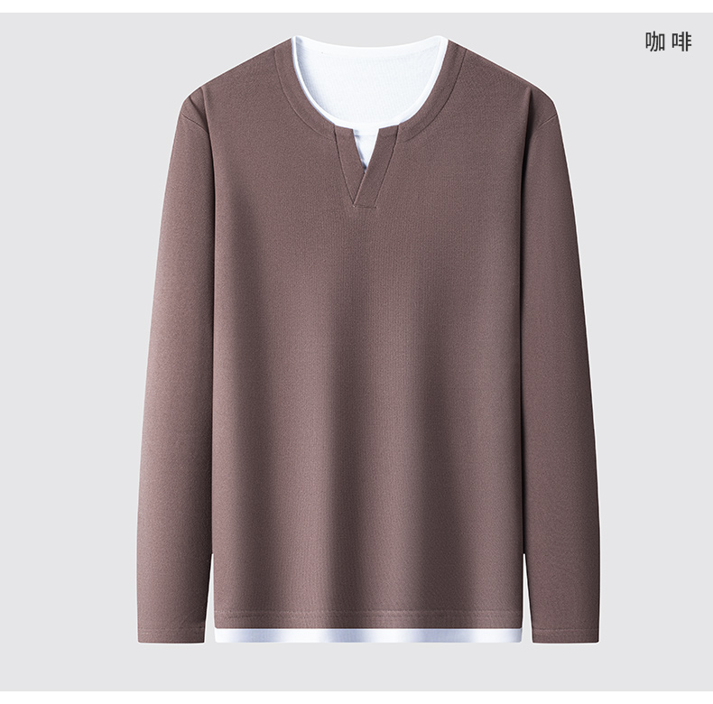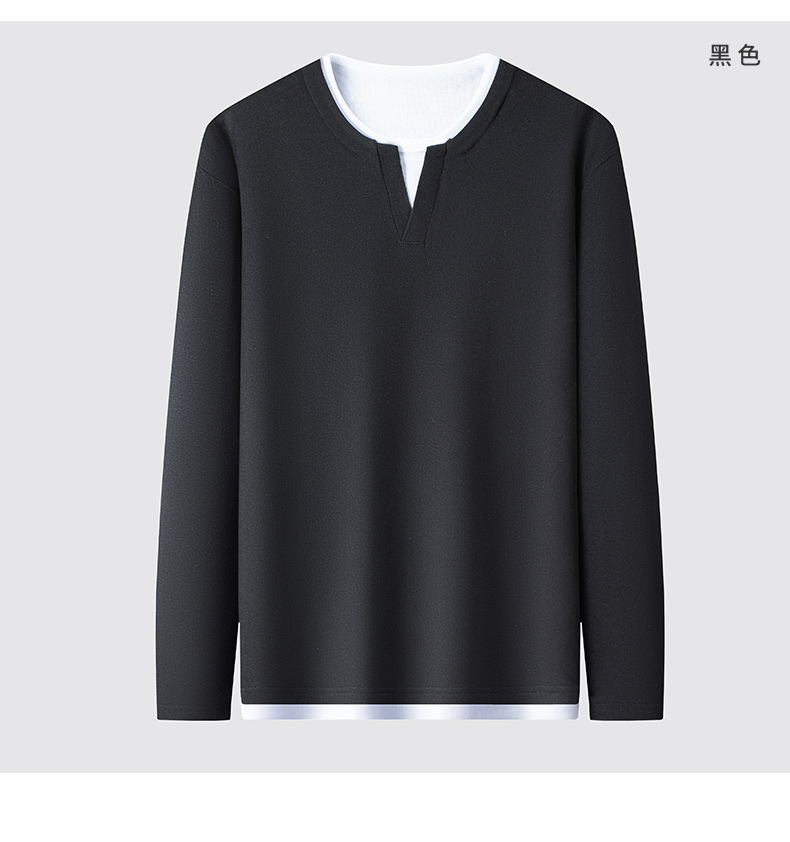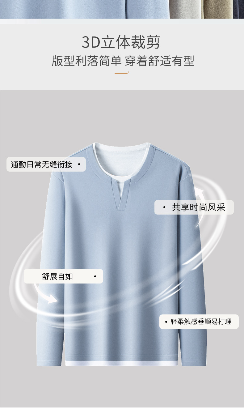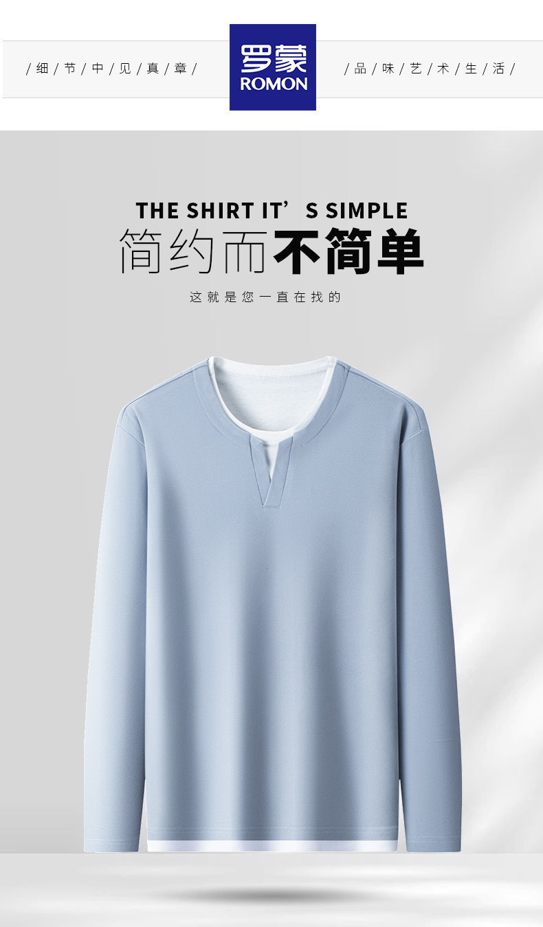罗蒙男士春秋假两件长袖圆领T恤舒适时尚男长袖上衣通勤T恤