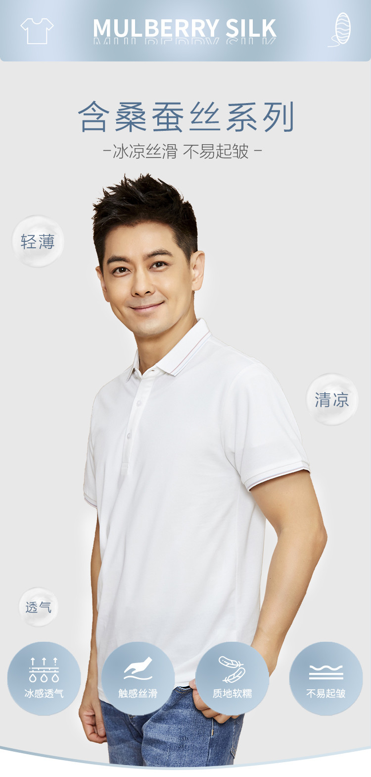 【蚕丝棉】罗蒙男士夏季薄款polo衫男短袖男冰丝速干t恤男短袖t恤男