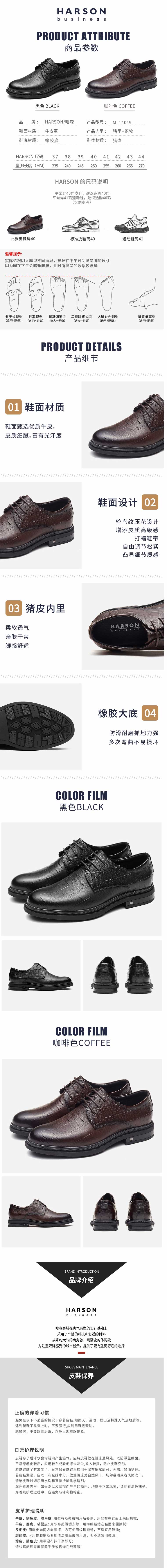 哈森男鞋2021秋季新款商务正装真皮系带压花德比鞋ML14049